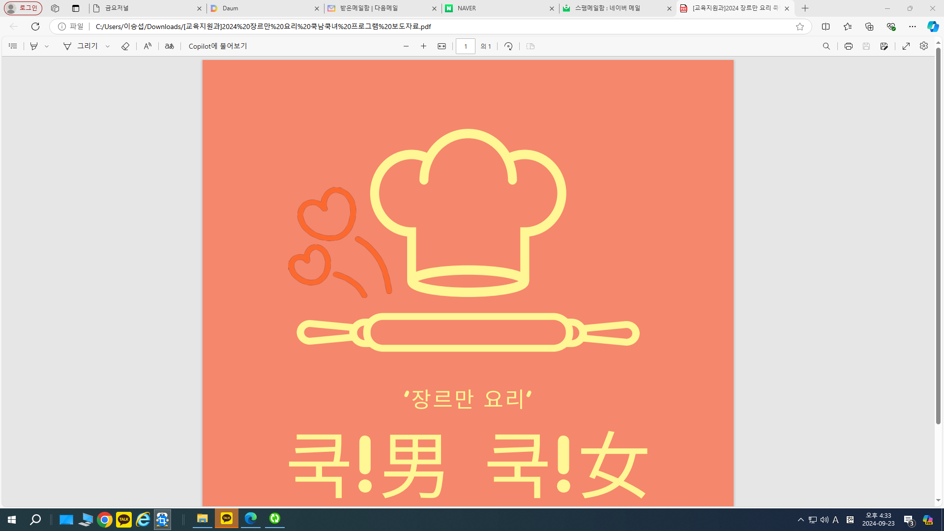 □ 문경교육지원청(교육장 이경옥)은 지역 내 청년들의 소통과 교류를 촉진하기 위해 청춘사업 장르만 요리 '쿡!남 쿡!녀'를 운영한다고 밝혔다. 저출산 및 인구감소 위기에 대응하고 직장 내 청년들의 삶의 질 향상을 위해 기획된 이번 사업은 문경소방서와 문경시 도시재생지원센터와의 협력으로 진행되며, 총 3회 매주 화요일 각기 다른 테마의 요리 수업이 진행된다.