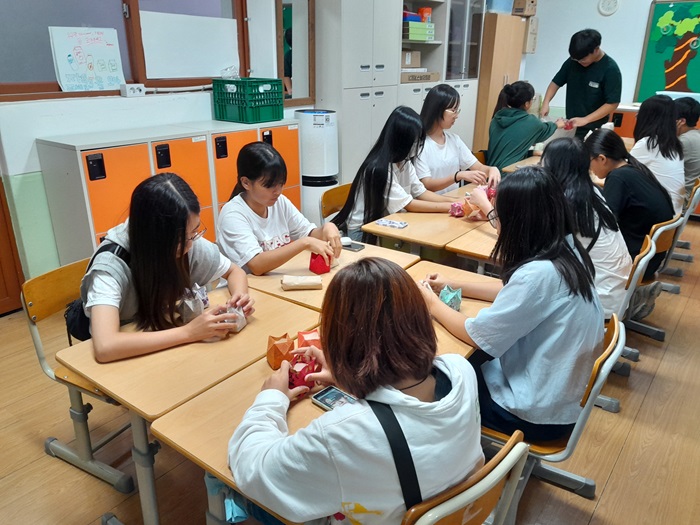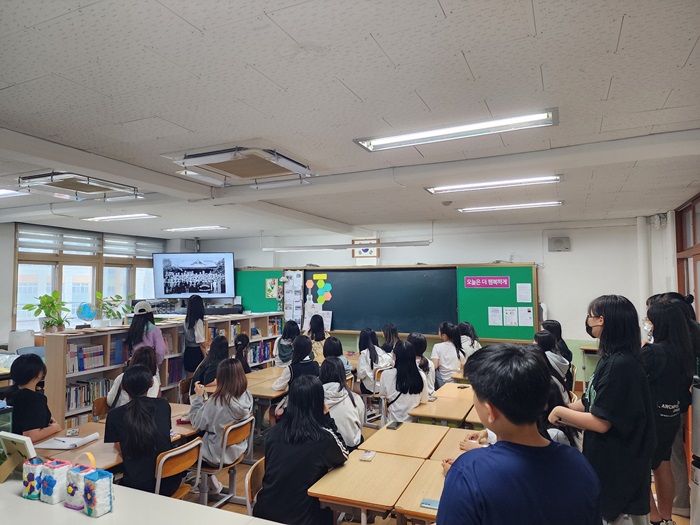 봉사활동에 참여한 재학생은 "비가 와서 쓰레기줍기활동을 하지 않아 아쉬웠지만 환경교육과 환경캠페인피켓을 중학교 언니오빠와 함께 만들면서 더 재미있고 도움이 되는 활동이었다.”,“젤파스만들면서는 냄새가 시원해서 할머니할아버지들에게 도움이 되었으면 하는 마음으로 만들었고 피켓을 만들면서는 지구를 위해 더 환경을 지키도록 해야겠다.”고 말했다.