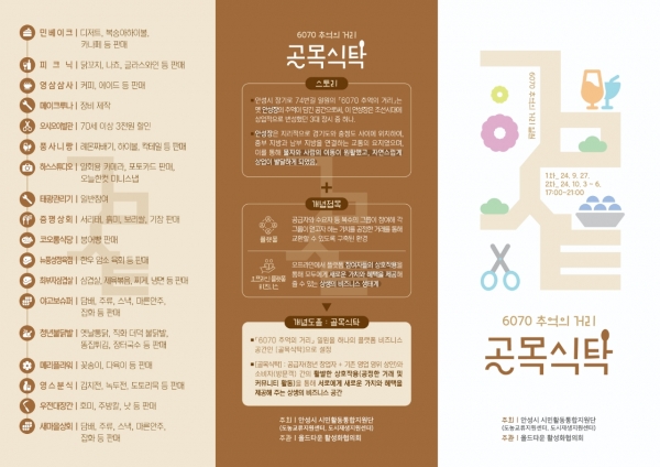 안성시는 오는 27일 6070 추억의 거리에서 골목식탁 행사를 개최한다고 밝혔다.