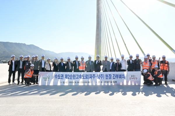 [금요저널] 강수현 양주시장이 24일 오전 김정민 부시장 및 관계 간부 공무원 등과 함께 수도권제2순환고속도로 4공구 현장을 방문하고 현장 회의를 개최했다.