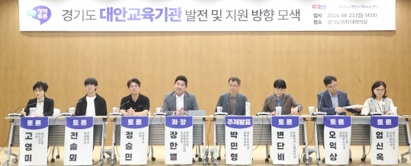 [금요저널] 경기도의회 교육행정위원회 장한별 부위원장이 좌장을 맡은 ‘경기도 대안교육기관 발전 및 지원 방향 모색’ 토론회가 23일 오후2시 경기도의회 대회의실에서 대안교육기관 관계자 등 200여명 이상이 참여한 가운데 성황리에 개최됐다.