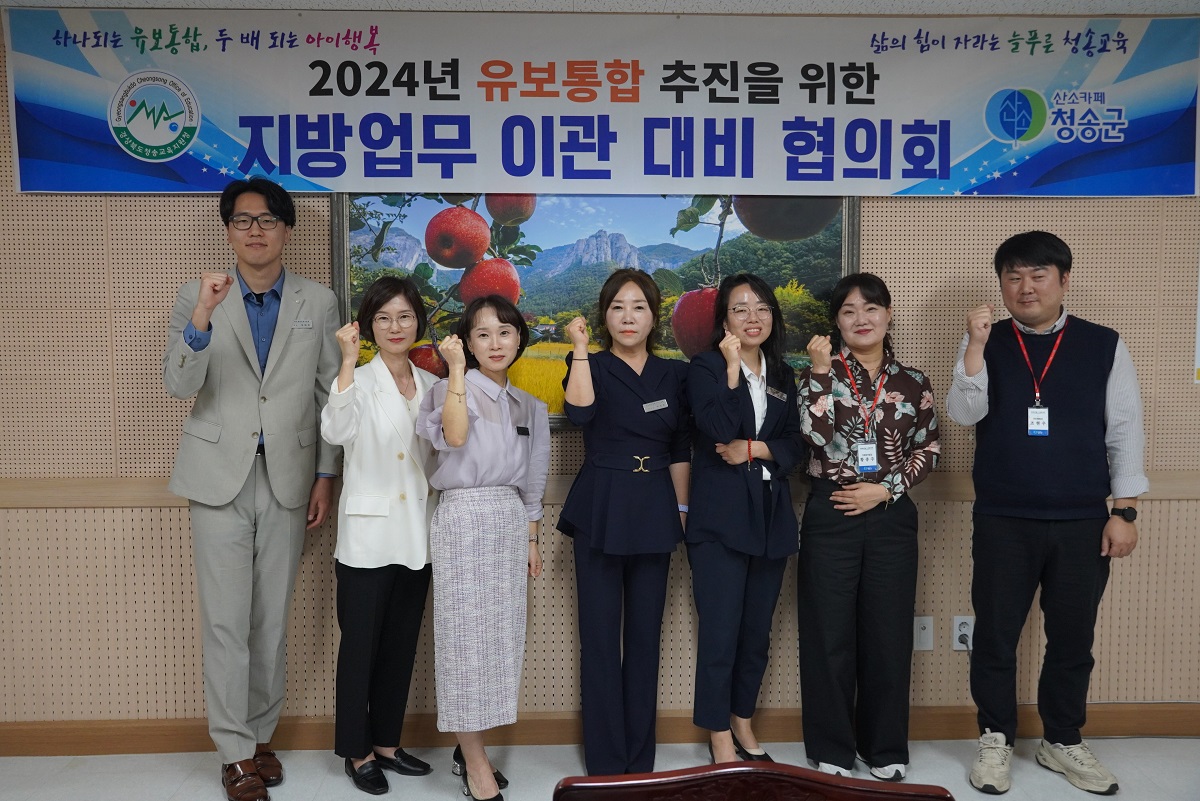 □ 경상북도청송교육지원청(교육장 신덕섭)은 9월 24일(화) 14시 청송교육지원청 소회의실에서 「청송 유보통합 추진 실무 협의체」위원 7명이 참석한 가운데 유보통합 업무의 원활한 이관 추진을 위한 실무협의체 6차 협의회를 개최하였다.