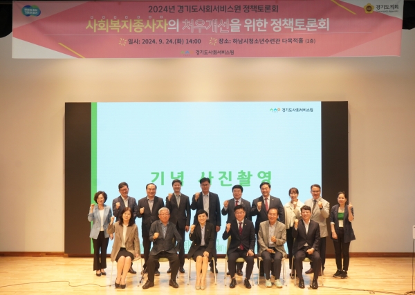 이어 김해련 경기도 복지정책과장, 민복기 하남시장애인복지관 관장, 김기춘 경기도민, 허윤범 경기도사회복지사협회 사무처장이 패널로 참여해 경기도 사회복지종사자 처우개선에 대해 다양한 의견을 제시했다.