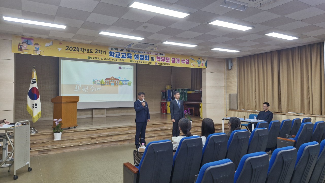 의성초등학교(교장 임기훈)는 9월 25일, 본교 학부모들을 대상으로 2024학년도 2학기 학교설명회를 시청각실에서 실시하였다. 이번 설명회는 학부모들에게 2학기 교육 계획을 안내하고, 학생들의 안전한 학교생활과 교육적 성장을 위한 다양한 프로그램을 소개하는 자리였다.