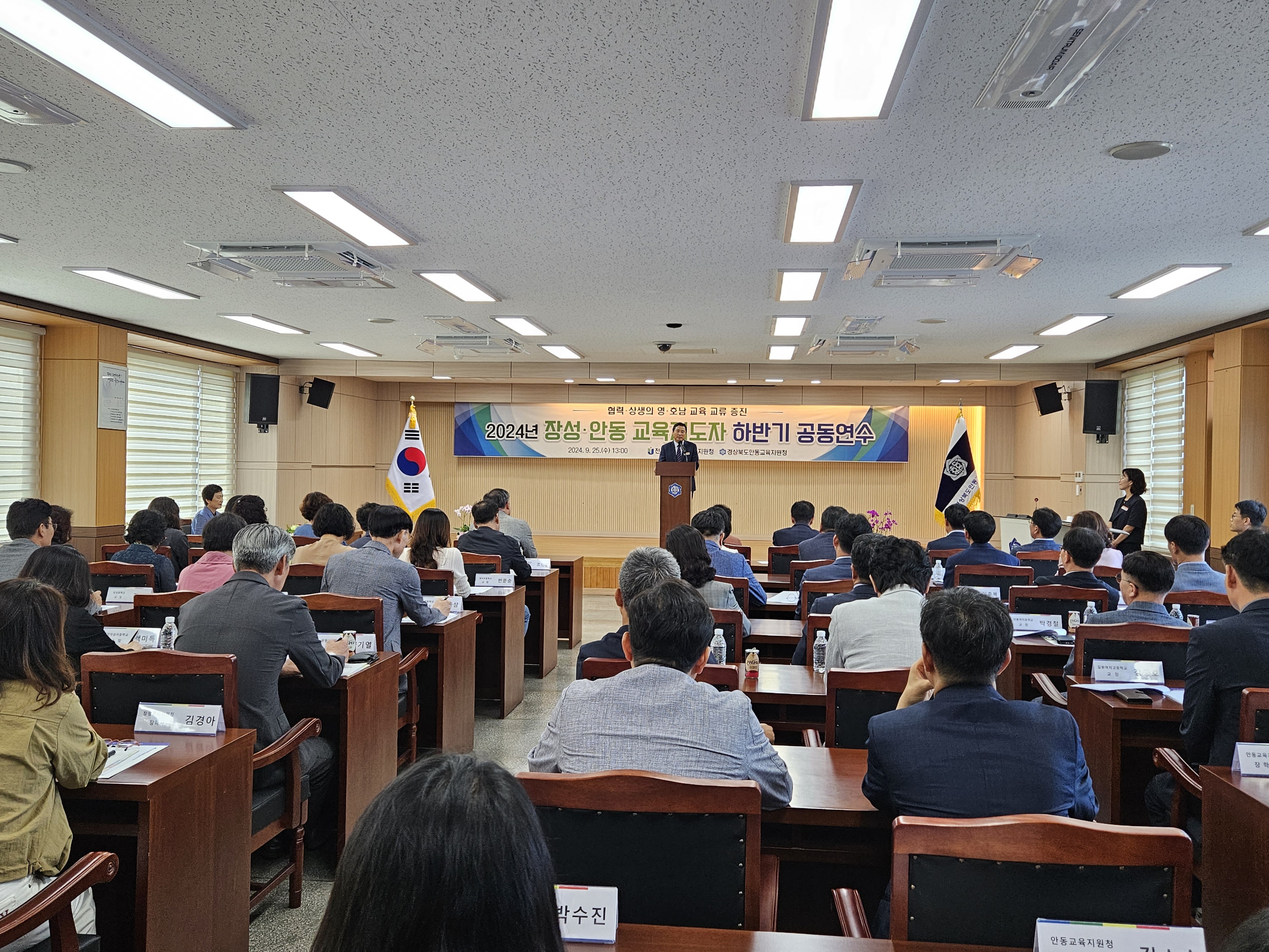 □ 경상북도안동교육지원청(교육장 안중환)은 9월 25일부터 26일까지 전라남도 장성교육지원청 교육지도자 27명을 초청해 ‘2024 장성·안동 교육지도자 하반기 공동연수’를 실시하였다.