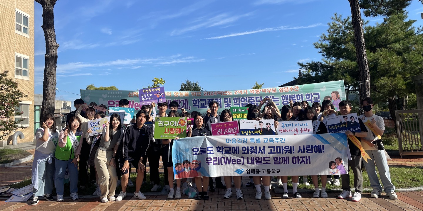 □ 영해중·고등학교(교장 홍상규)는 9월 25일(수) 2학기「학생·학부모 상담주간」 및 「마음건강 특별 교육주간」을 맞아 영해고등학교 전교생을 대상으로 새 학기 적응력 향상과 생명을 존중하는 문화를 확산하기 위해‘생명존중 및 학업중단 예방’등굣길 캠페인을 실시하였다.