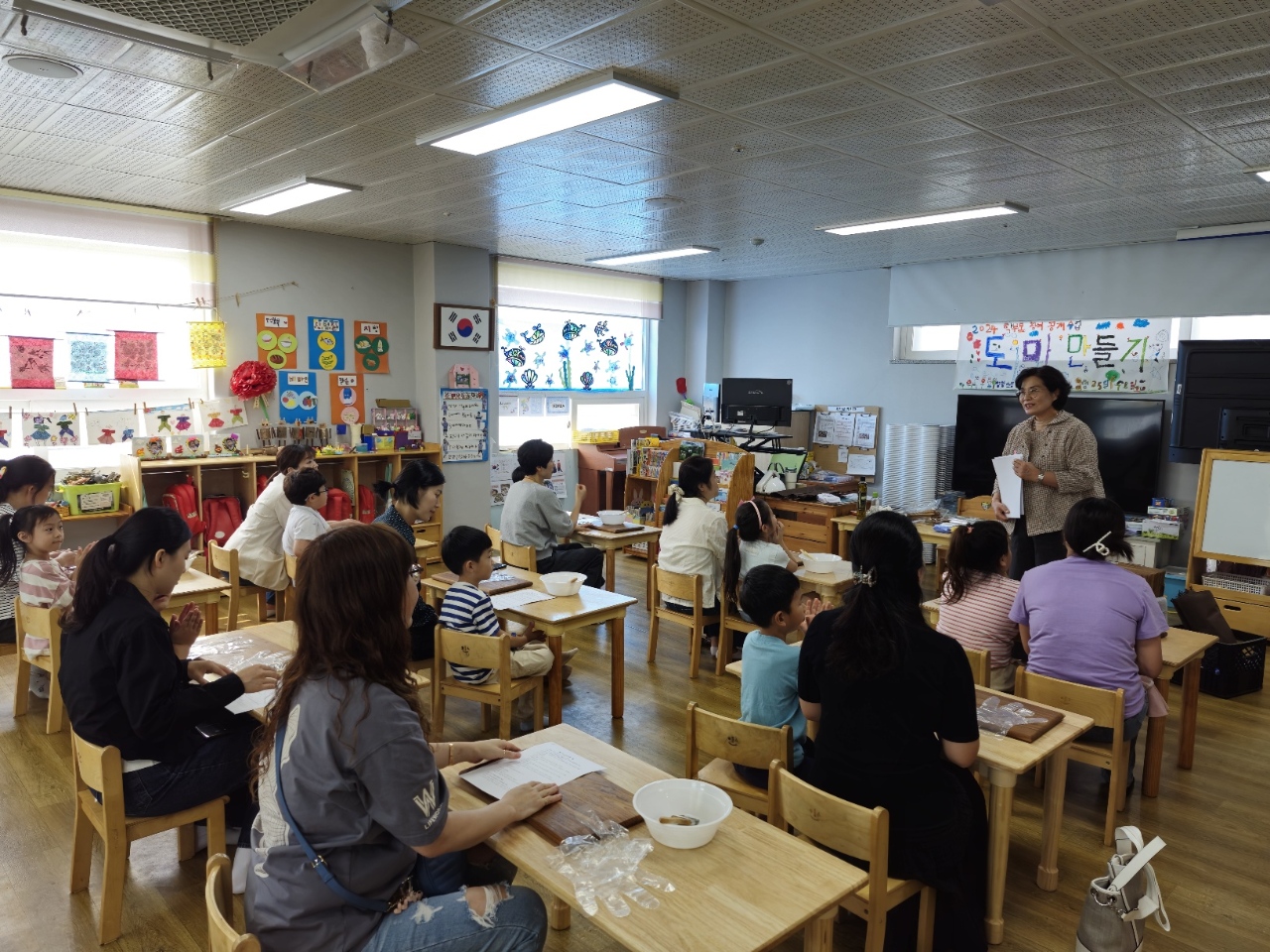 □ 이날 활동은 새로 부임하신 원장선생님과 원감선생님 소개 및 소통의 시간, ▲부모님과 함께 알록달록 큰 그림 그리기, ▲나만의 도마 만들기 등 유아의 감성을 부모님과 함께 표현 하고 부모님의 기대에 맞는 강사님의 ‘내 손으로 만든 도마에 대한 관리 방법 알아보기 ’ 등 생활에 도움이 되는 활동으로 계획하여 실시했다.