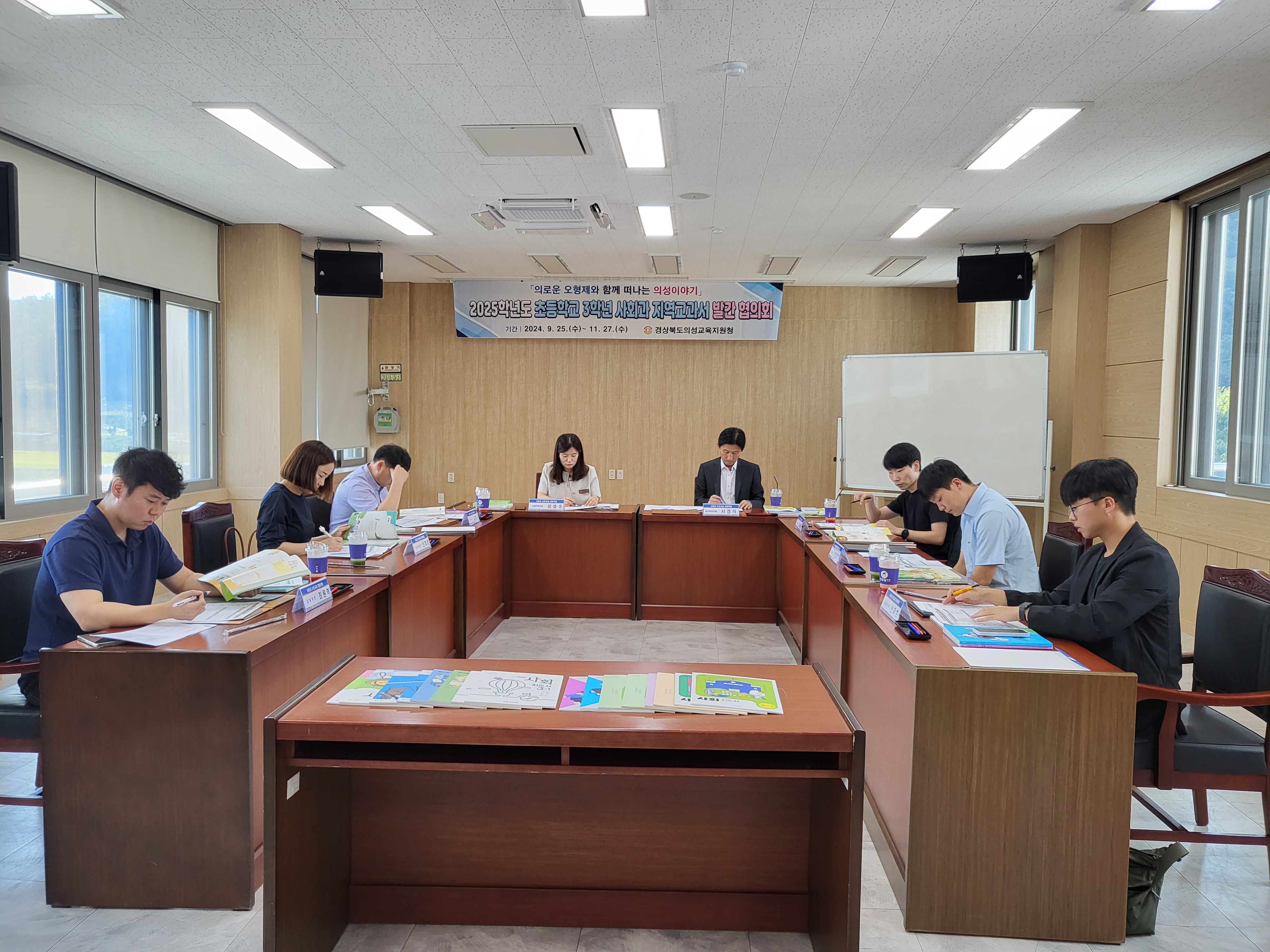 이번 협의회는 책임연구위원인 의성교육지원청 교육지원과장, 연구 및 집필책임위원인 장학사, 초등학교 현장의 실무책임위원인 교감, 집필위원인 초등 교사를 비롯해 총 11명을 개발위원으로 구성하여 2025년에 사용할 초등 3학년 사회과 지역교과서 ‘의로운 오형제와 함께 떠나는 의성 이야기’를 집필하기 위해 개최되었다.