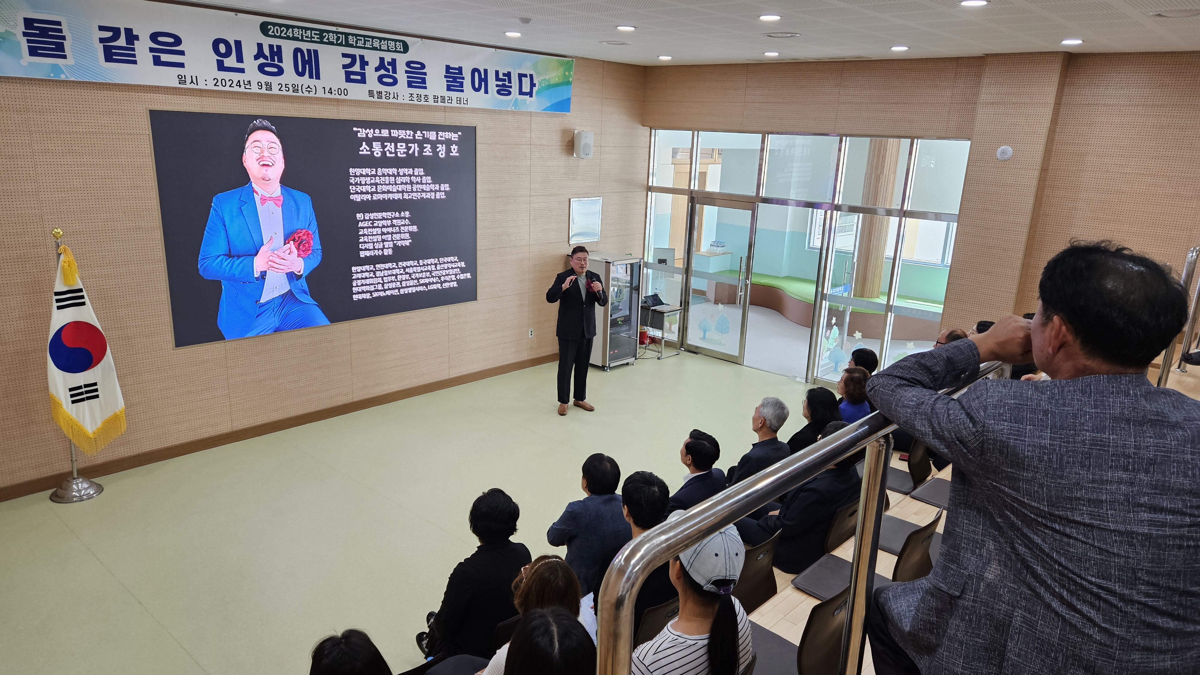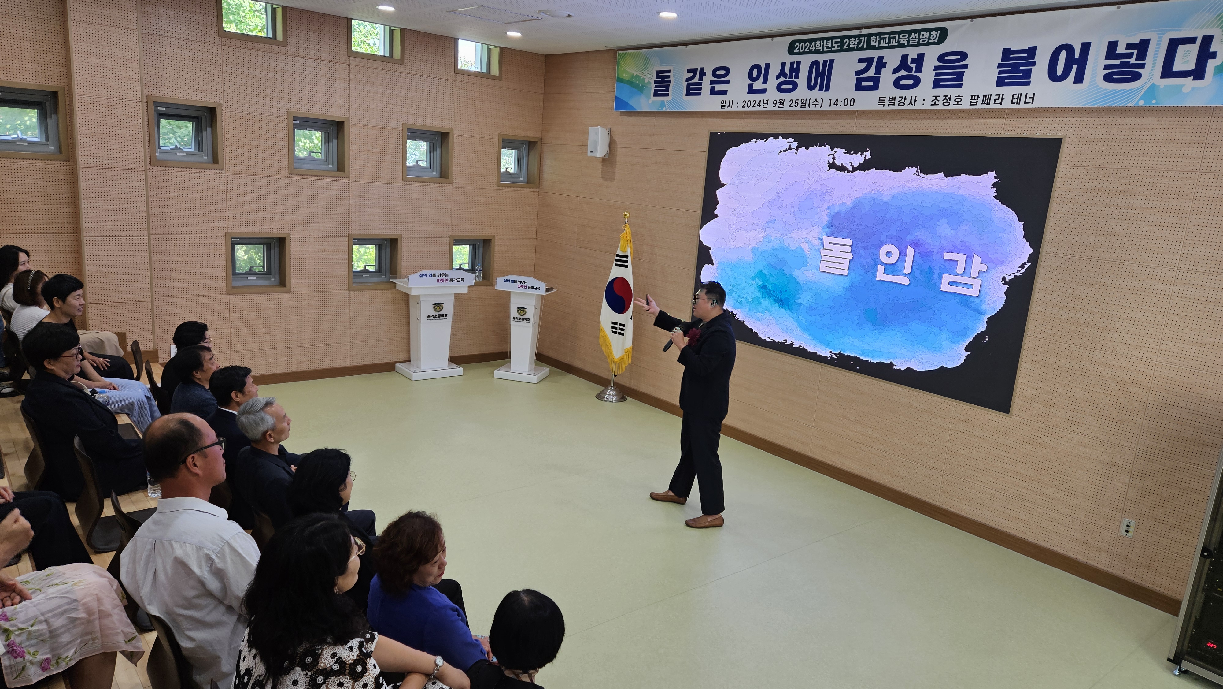 특히 이번 학교교육설명회에서는 팝페라 테너 가수인 조정호 강사를 모시고 ‘돌 같은 인생에 감성을 불어넣다.’라는 주제로 특별 초청 강연을 진행하였다. 이번 강연을 통해 참석한 많은 내빈 및 학부모들의 예술적 안목을 넓히고 지친 심신을 위로하며 행복지수가 상승하는 의미있는 시간이 되었다.