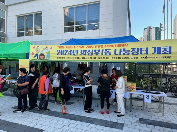[금요저널] 의정부시 의정부1동주민센터는 9월 23일과 24일 양일간친환경 소비문화 독려를 위한 나눔장터를 성황리에 개최했다.