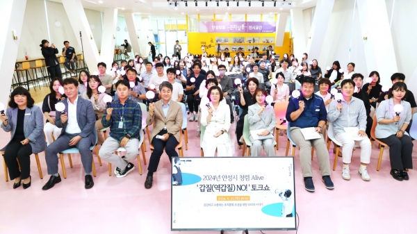 [금요저널] 안성시는 지난 25일 안성맞춤아트홀 문화살롱에서 직원들을 대상으로 서로 존중하고 소통하는 조직문화 조성을 위한 시장과 함께하는 '갑질 NO' 청렴Alive 토크쇼를 개최했다.