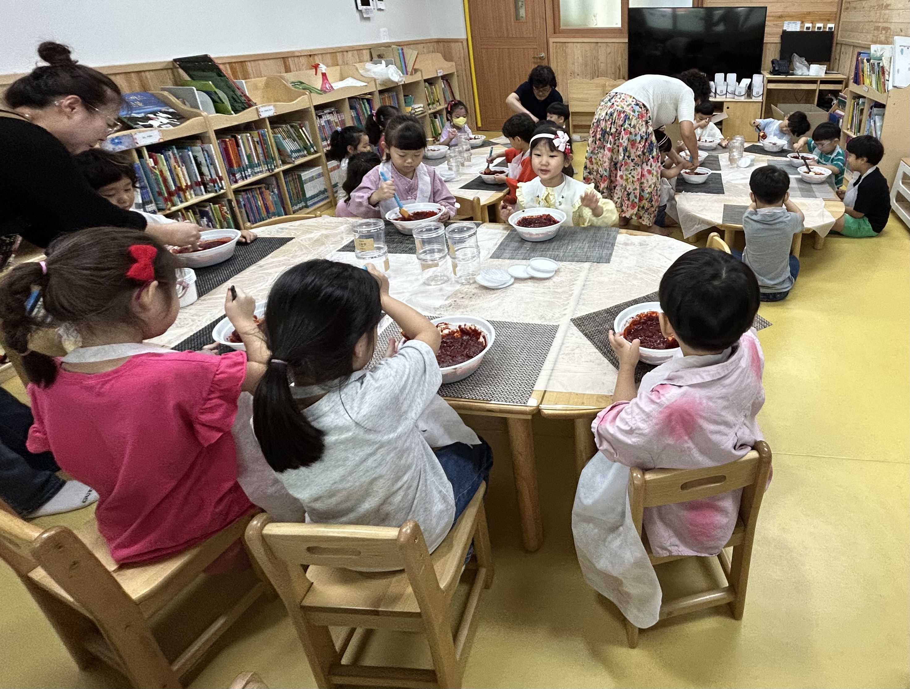 □ 호명초등학교병설유치원(원장 이성태)는 9월27일(금) 유아 81명을 대상으로 유치원 도서실에서 고추장 만들기 체험을 진행하였다.