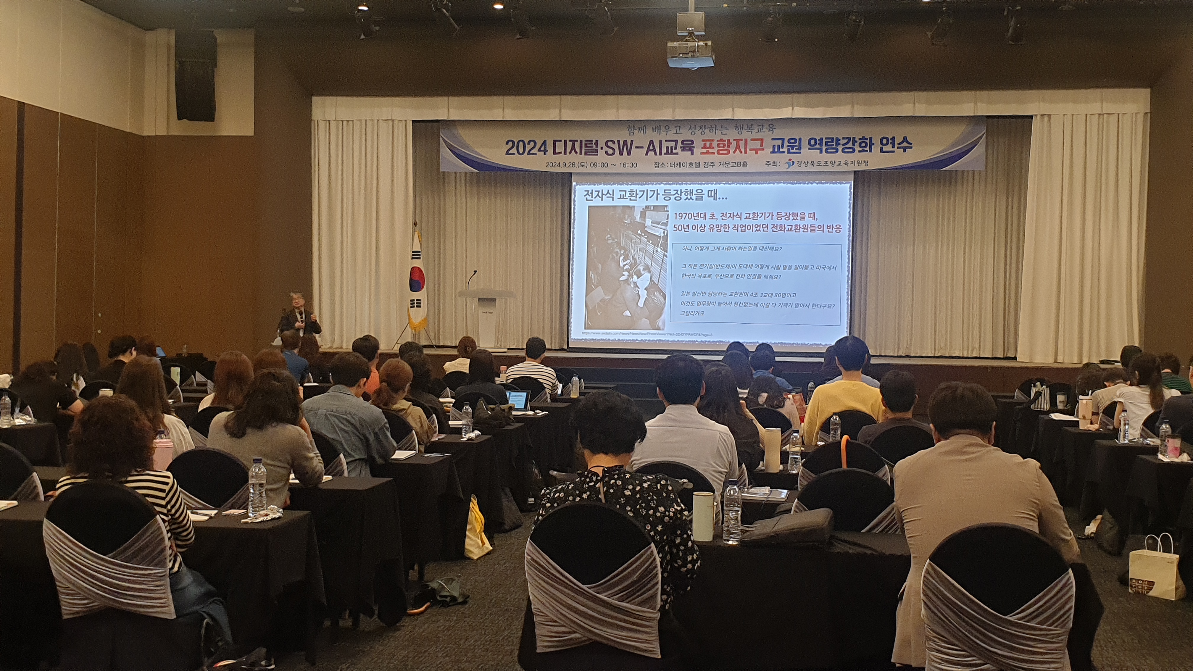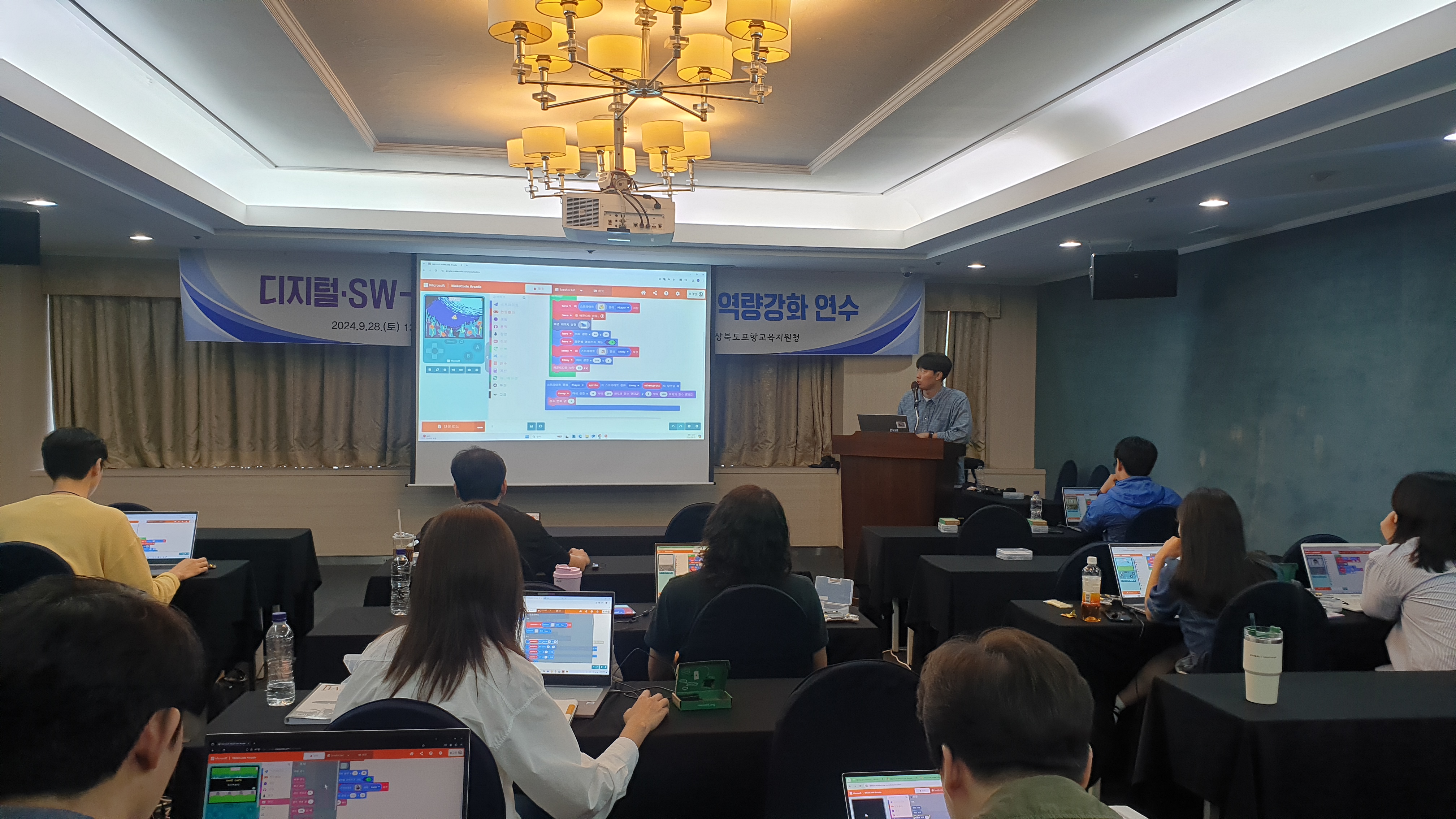 포항교육지원청(교육장 최한용)은 9월 28일(토) 09:00~16:30 경주 더케이호텔 거문고홀 및 가야금 A, B, C홀에서 디지털․SW-AI교육 포항지구 교원역량강화 연수를 개최하였다. 이번 연수는 포항, 영덕지역 교사들이 급변하는 디지털 시대에 맞춰 최신 기술을 이해하고, 이를 교육 현장에서 효과적으로 적용할 수 있도록 돕기 위한 목적으로 기획되었다.