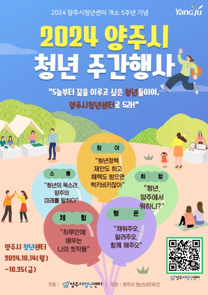[금요저널] 양주시가 ‘양주시청년센터’의 개소 5주년을 기념해 오는 14일부터 25일까지 ‘2024년 양주시 청년 주간 행사’를 개최한다고 2일 밝혔다.
