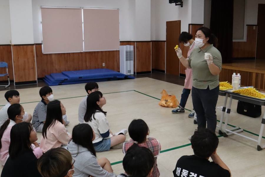 □ 이번 프로그램은 포항북구보건소의 지원으로 진행되었으며, 초기 치아우식증(충치) 예방을 위해 치아에 불소바니쉬를 도포했다. 이를 통해 학생들의 충치 진행을 억제하고 면역력을 높이는 동시에, 구강 관리에 대한 교육도 병행하여 학생들의 구강 건강에 대한 인식을 증진시켰다.