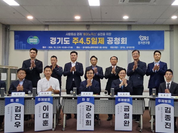 끝으로 이용호 부위원장은 “직종 간 형평성, 임금 삭감 없는 노동시간 단축은 사회적 대타협이 전제되어야 한다”고 강조하며 “오늘 나눈 의견들이 주4.5일제 도입의 밑거름이 되어 경기도에서 새로운 노동문화가 정착되길 바란다”고 덧붙였다.