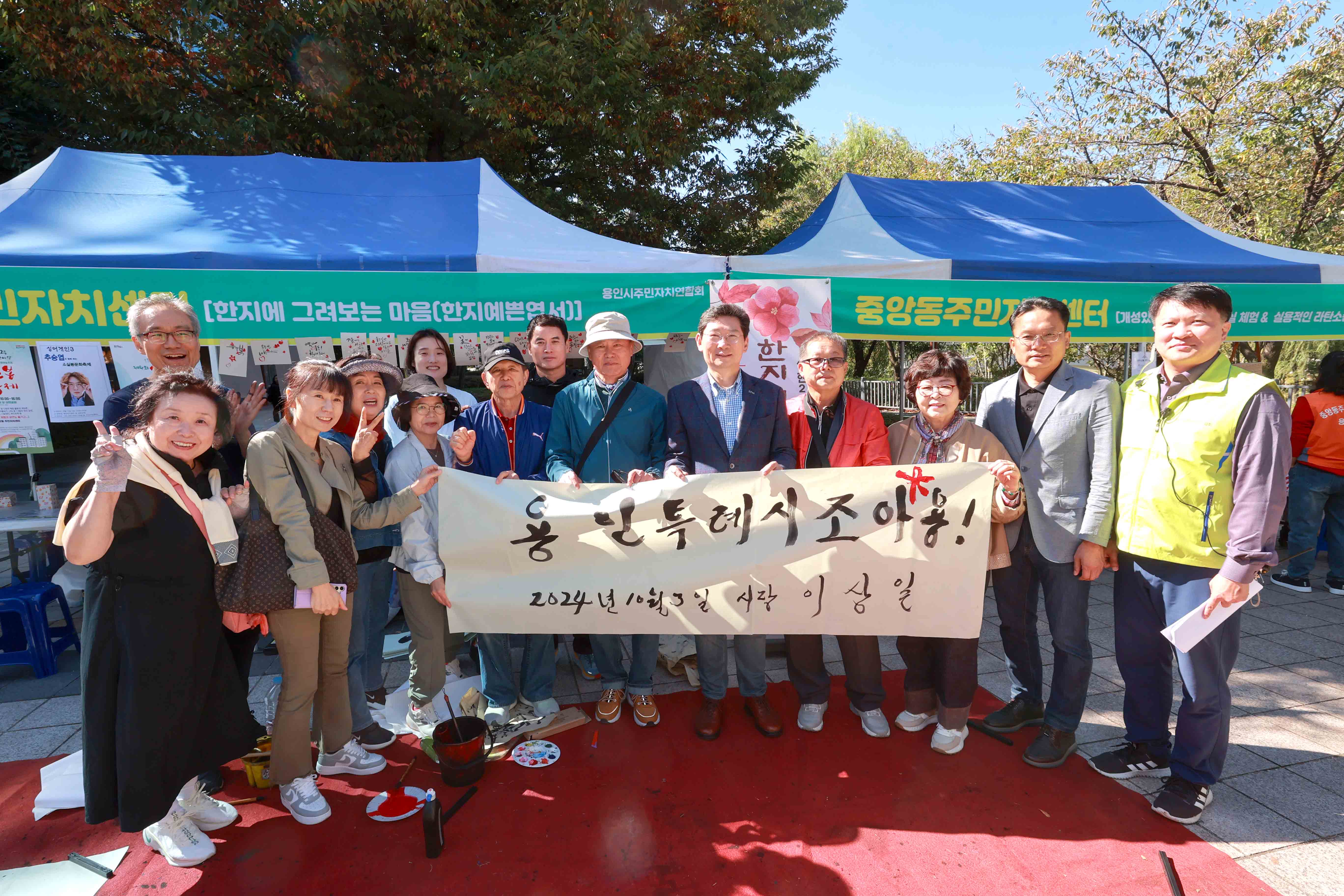 수지구 상현2동 부스에서 이 시장은 직접 붓을 들고 대형 한지에 용인과 시 캐릭터 '조아용'을 홍보하려는 듯 '용인특례시 조아용!’이라고 썼고, 이를 지켜보던 시민들은 박수를 보냈다.