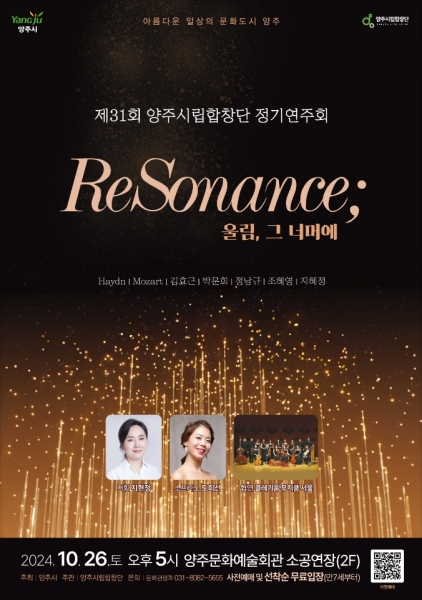 [금요저널] 양주시가 오는 26일 토요일 오후 5시, 양주문화예술회관 소공연장에서 제31회 양주시립합창단 정기연주회 ‘ReSonance: 울림, 그 너머에’를 개최한다고 4일 밝혔다.