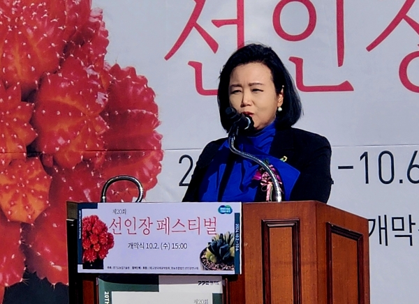 정윤경 부의장은 축사를 통해 “이번 행사를 준비해 주신 경기도농업기술원, 고양국제꽃박람회, 선인장연구회 관계자들과 화훼 산업에 종사하시는 모든 분들의 노력에 감사의 말씀을 전한다”며 “전국 화훼 농가의 대부분이 경기도에 위치하며 판매량에서 1위를 기록하는 등 경기도가 화훼 산업의 중심지”고 말했다.