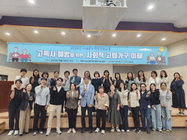 여주시 관계자는 “현재 여주시는 고독사 예방 및 관리 시범사업을 진행중에 있으며 고독사 문제에 적절히 대응하기 위해 앞으로도 종사자들을 위한 다양한 교육들을 준비할 예정이다”고 밝혔다.