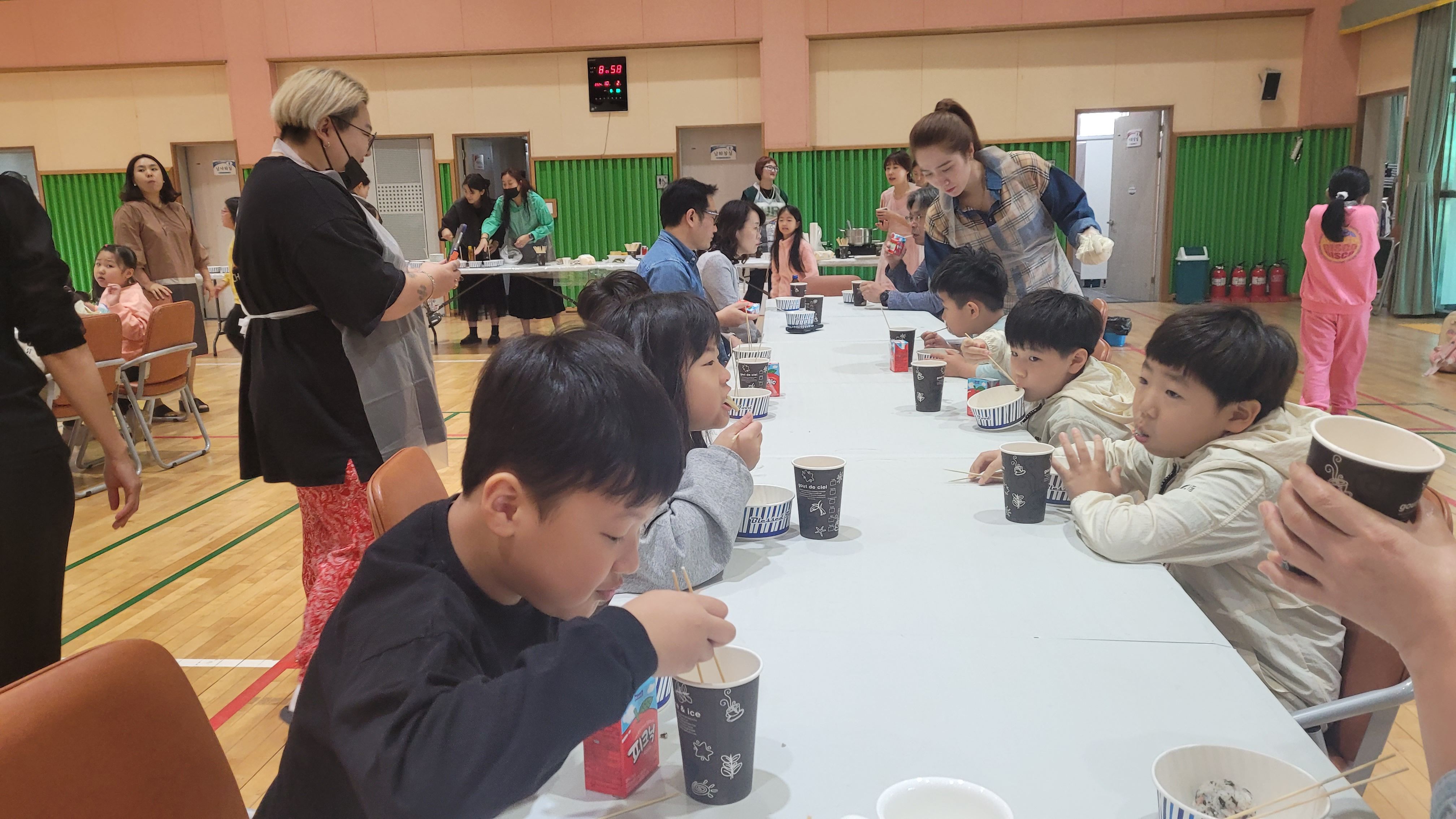 ▣ 맘스쿡데이는 9년째 계속되고 있는 호계초등학교 학부모회의 전통적인 행사이다. 1학기에 이어 올해 두 번째로 열린 이번 행사에는 10여명의 학부모회 회원이 참가하여 정성이 가득 담긴 아침 식사를 준비하였다. 일찍 등교한 학생들은 따뜻한 어묵탕과 주먹밥을 먹으면서 다소 쌀쌀해진 날씨 속에 몸과 마음을 녹일 수 있었다.