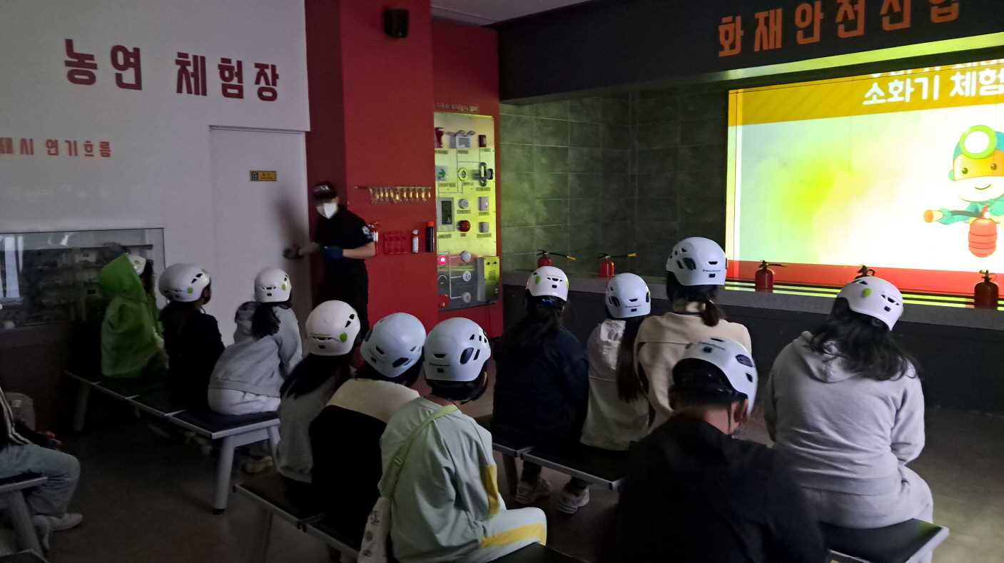 □ 학생들은 2조로 나누어 자연재해(지진, 설해, 산불 체험), 생활안전(노래방, 항공기 탈출, 전기, 대테러 체험) 및 소방 안전 체험 (완강기 사용법, 소화기 사용 등) 상황별 시뮬레이션 체험으로 안전 역량 및 안전의식을 키울 수 있도록 하였다.