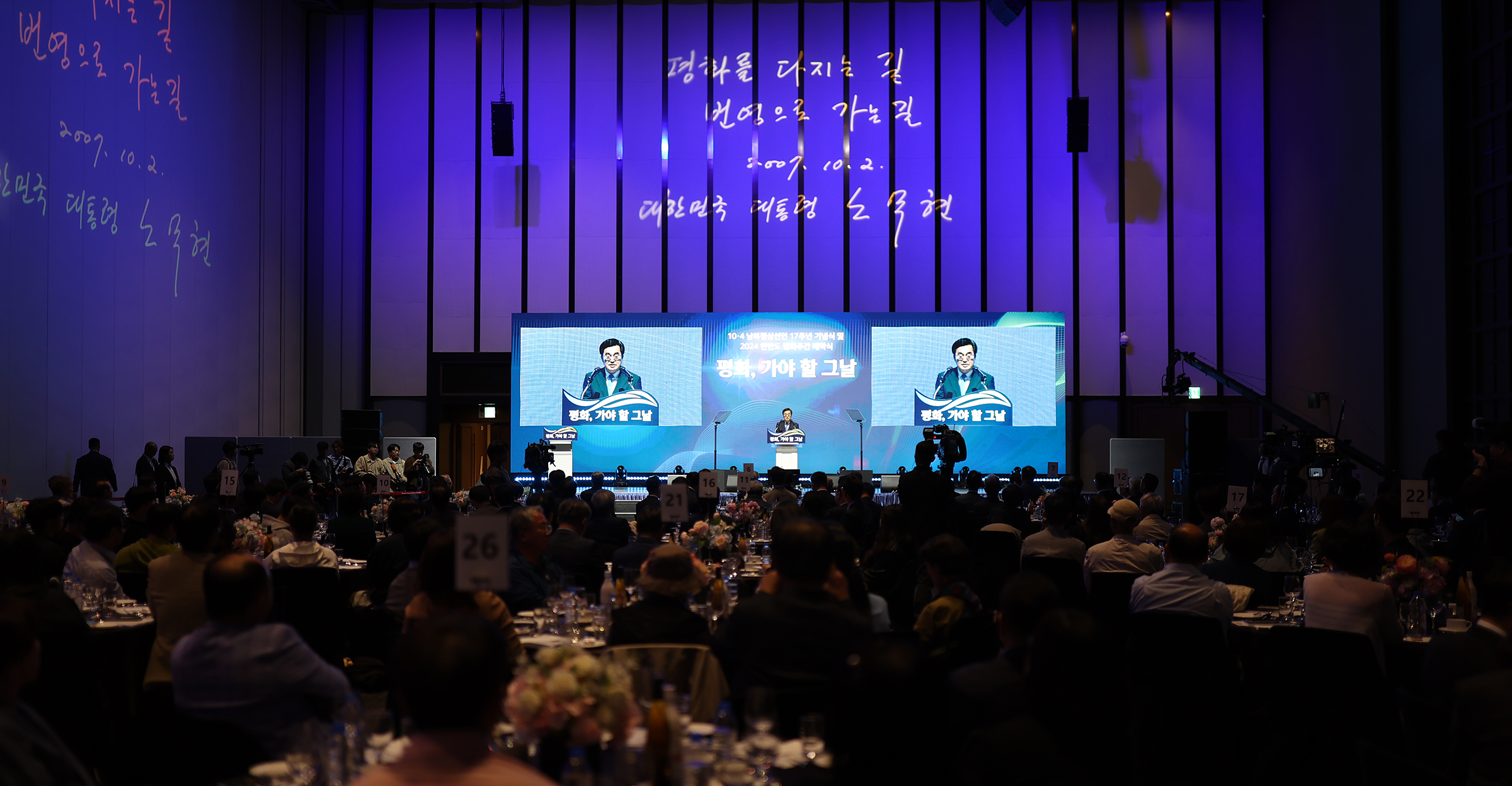 그런 뒤 “10・4 남북정상선언은 평화와 번영의 한반도 시대로 나아가는 원대한 포부였고, 매우 실천적인 합의였다. NLL이라는 군사·안보 지도 위에 평화·경제 지도를 새롭게 그린 서해평화협력지대를 합의했고, 개성공단이 실질적으로 가동되기 시작했다. 경기도의 접경지역에 대규모 외자 유치가 이뤄졌고, 우리 중소기업들도 새로운 활로를 찾았다”면서 “남북관계 발전이 평화를 만들고, 평화와 경제가 선순환하는 과정을 보여준 역사적 사건이었다”고 평가했습니다.