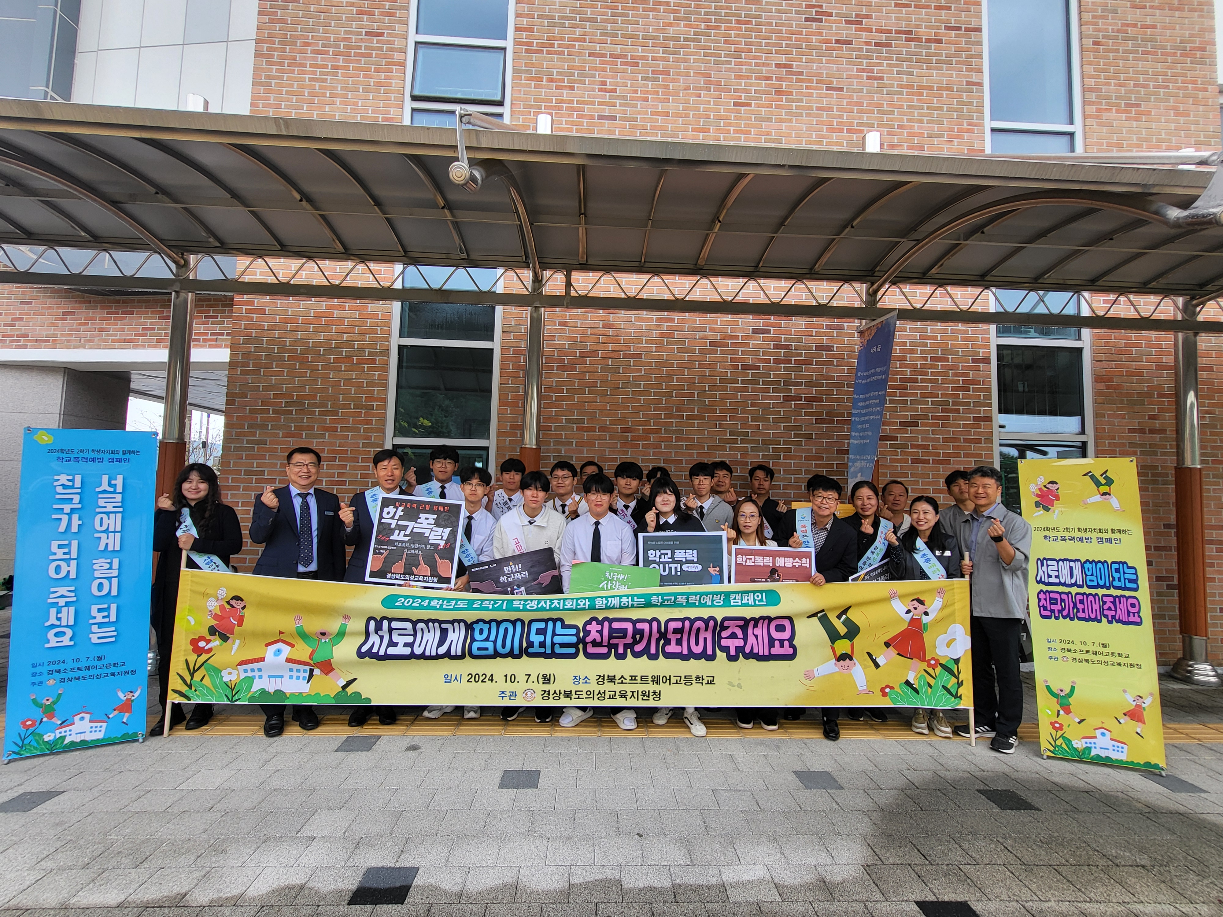 경상북도의성교육지원청(교육장 이우식)은 10월 7일(월) 07시 50분부터 경북소프트웨어고등학교 교정에서 경북소프트웨어고등학교 학생자치회, 교직원, 의성교육지원청 직원 등과 함께 2024학년도 하반기 학교폭력예방캠페인을 실시했다.