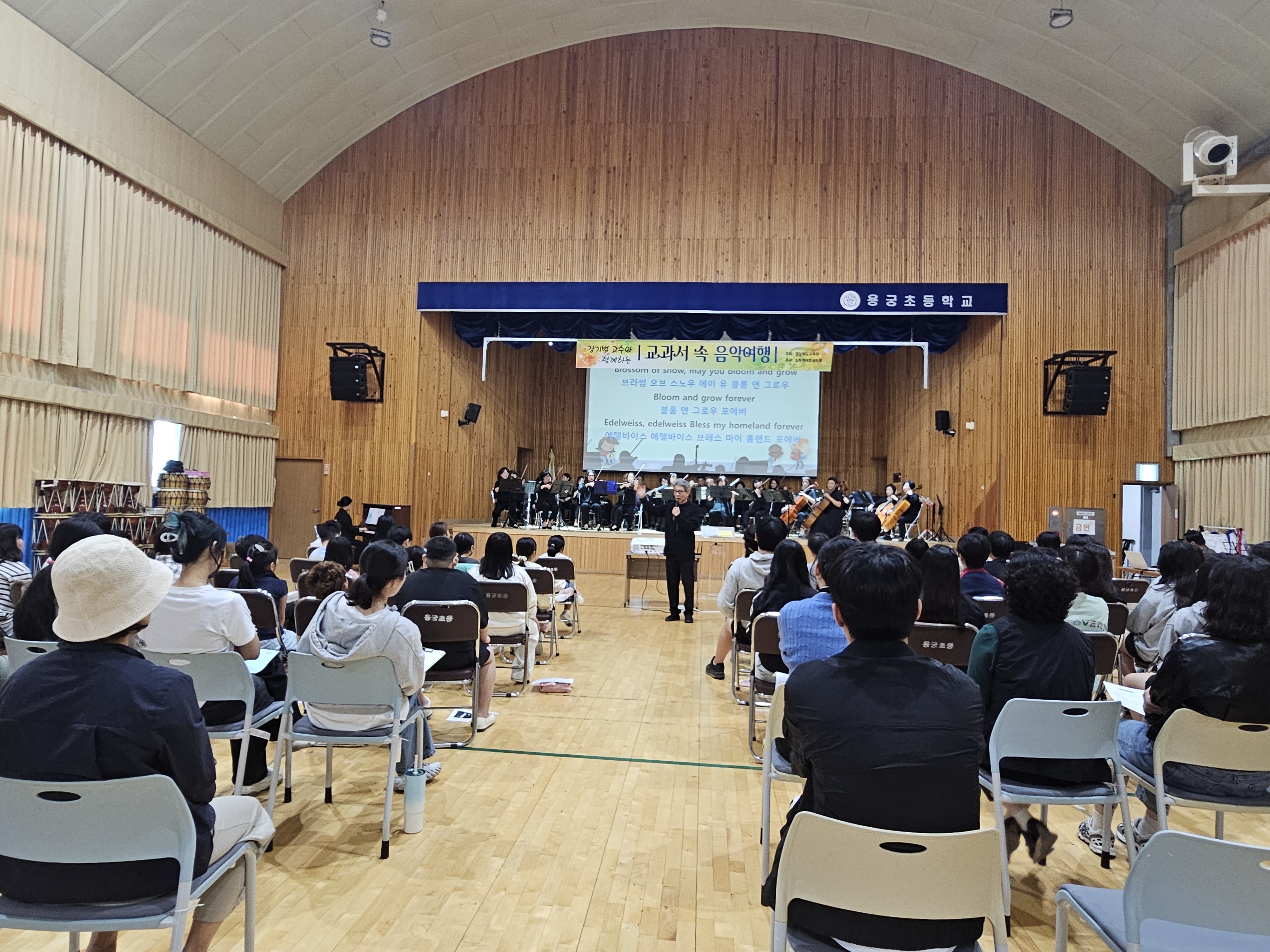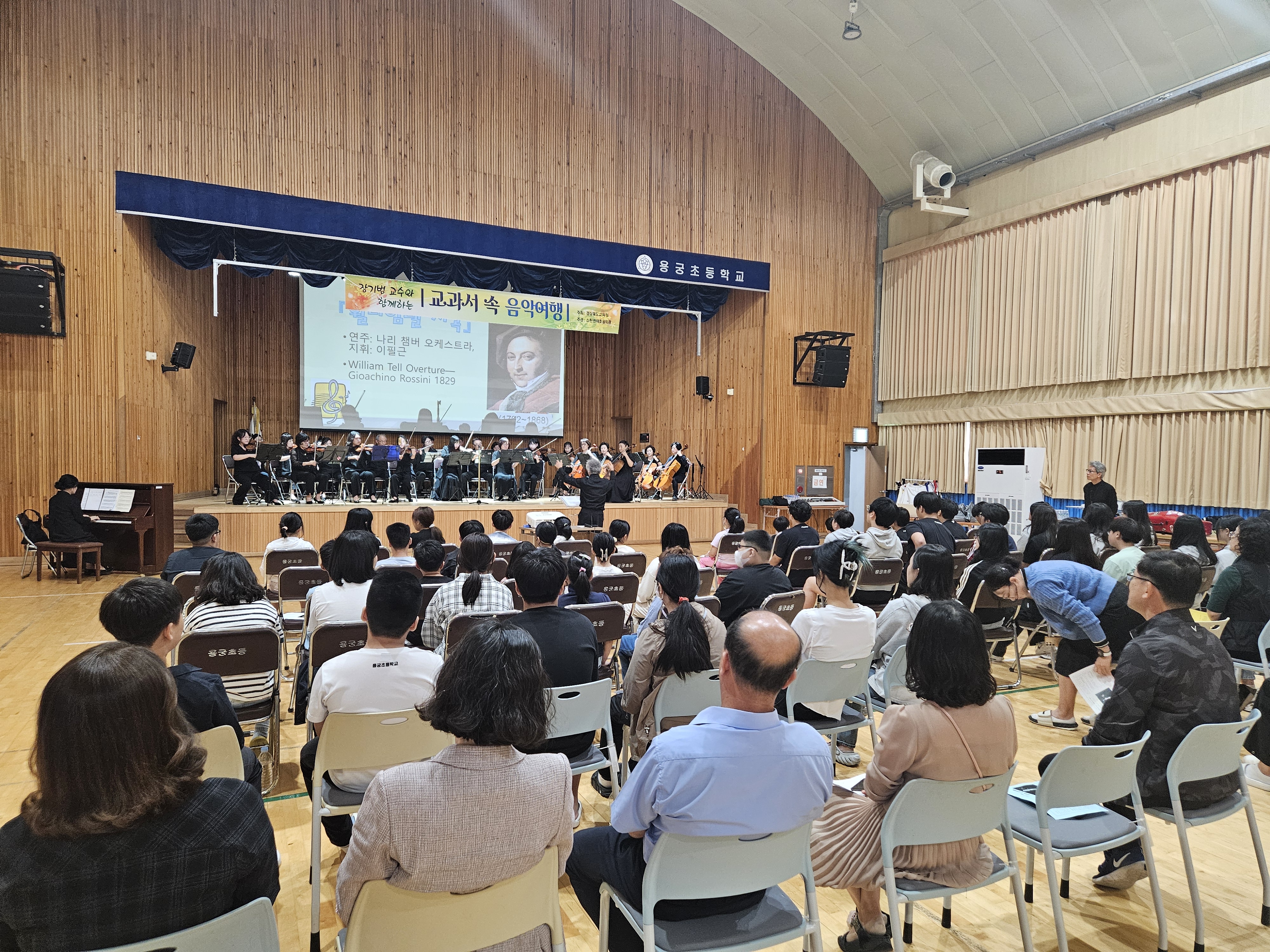 용궁초등학교(교장 장홍식)는 9월 30일(월), 장기범 교수와 함께하는 교과서 속 음악여행을 진행하였다. 이번 행사는 경상북도교육청의 주최, 소천 권태호 음악관의 주관으로 열렸으며 소규모 학교의 문화예술체험 기회를 제공하기 위해 기획되었다. 이번 음악회는 용궁초 및 용궁중 학생, 학부모, 교직원이 참석하였다.