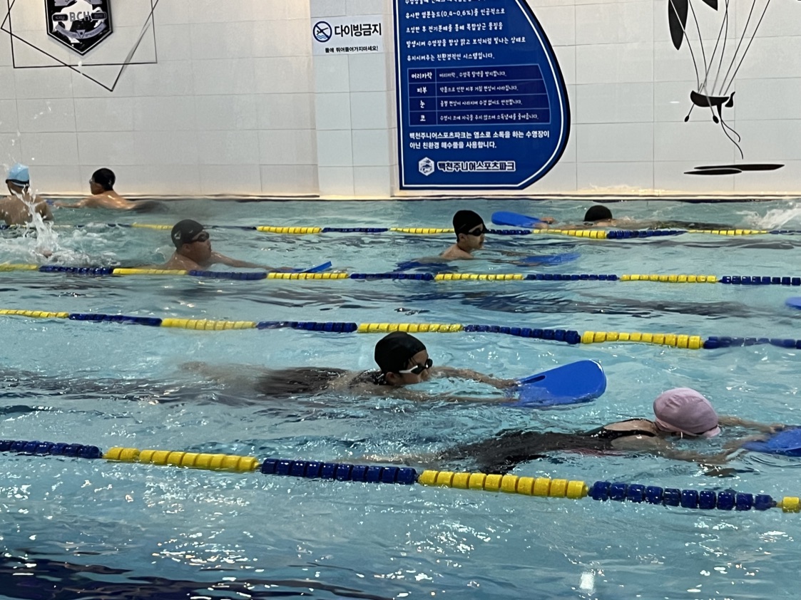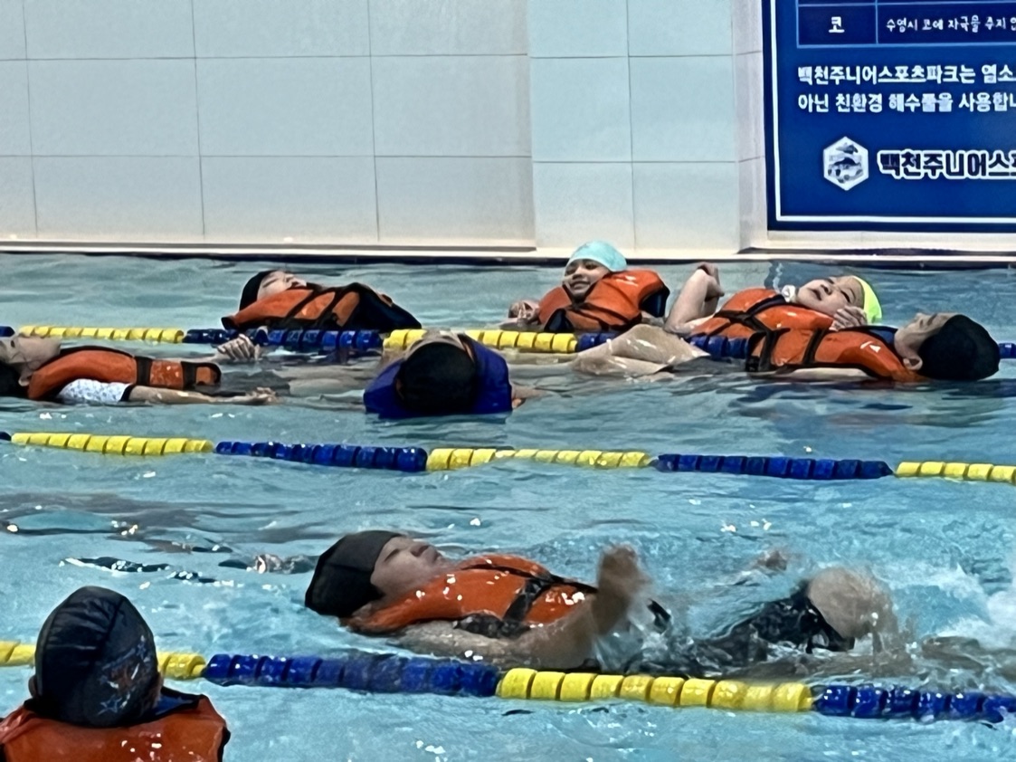 □ 이번 생존수영 실기교육은 경산시 백천스포츠파크에서 진행되었으며, 전문 강사의 지도 아래 구명조끼 착용법, 입수 자세, 누워뜨기, 이동하기 등의 기초적인 수영 기술을 배웠다. 이는 학생들이 물에 대한 두려움을 극복하고, 위기 상황에서도 침착하게 대처할 수 있는 능력을 키울 수 있었다.