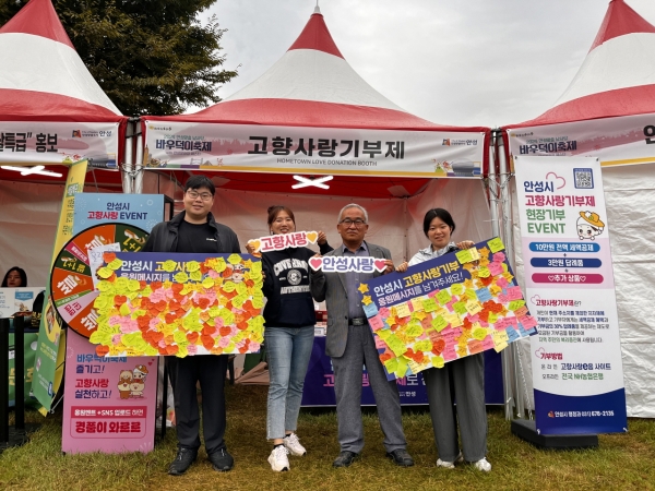 시 관계자는 “안성 대표 축제인 바우덕이 축제기간에 전국 각지에서 방문한 다양한 분들의 고향사랑을 실천하는 현장 기부가 이어졌다”며 “이번 홍보부스 운영을 통해 기부제도가 더욱 활성화되고 안성을 사랑하는 마음들이 전국으로 확산됐으면 좋겠다”고 말했다.