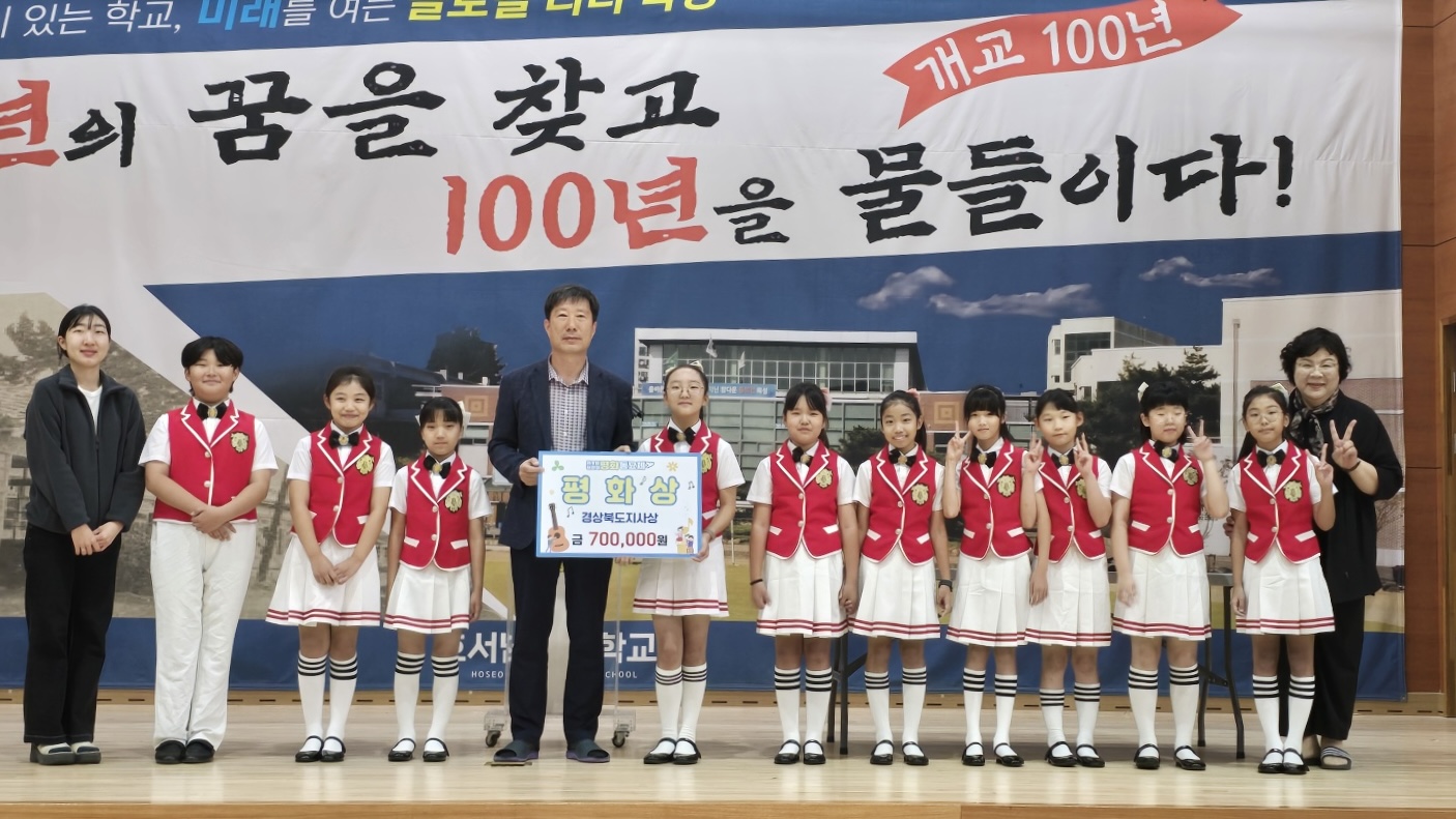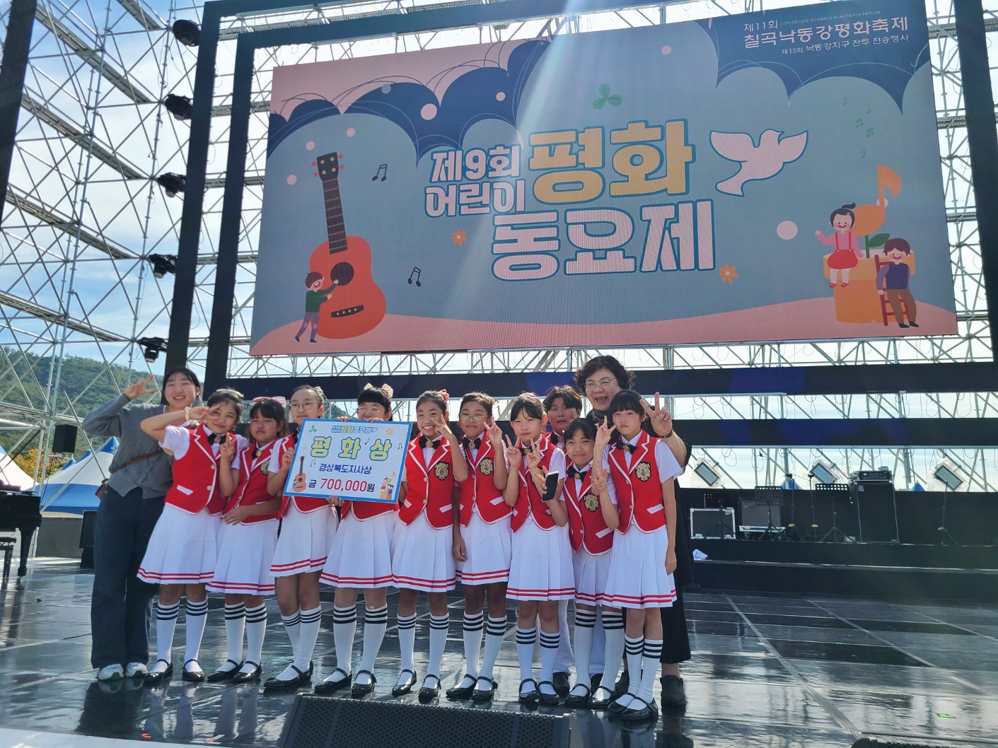□ 호서남초등학교(교장 임종효)의 합창단 ‘꿈꾸는 무지개’가 10월 5일(토) 칠곡보 생태공원에서 열린‘제9회 어린이평화동요제’에서 평화상(경상북도지사상, 1등)을 수상하였다.