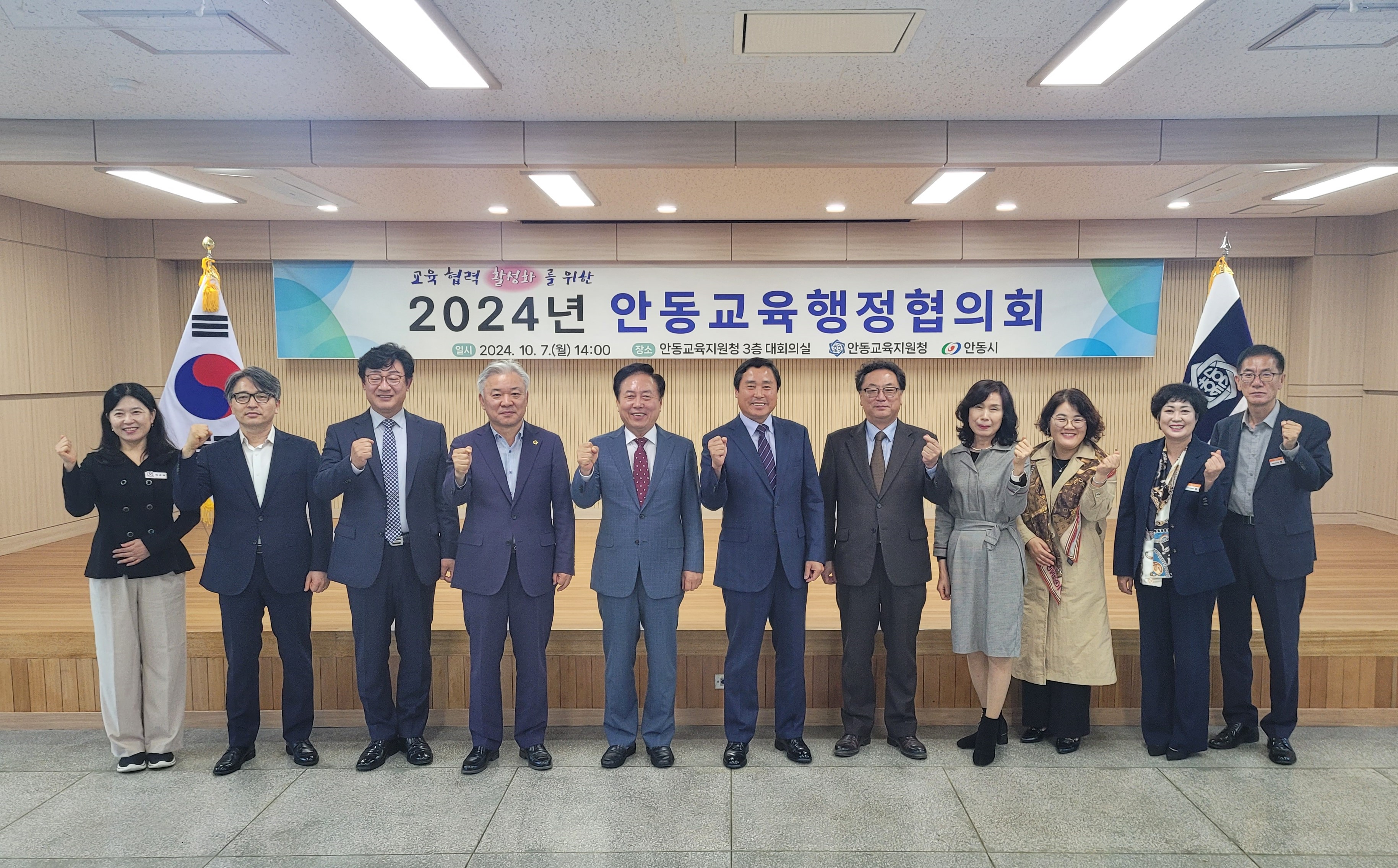 안동교육지원청(교육장 안중환)은 10월 7일(월) 교육지원청 3층 대회의실에서 안중환 교육장과 권기창 안동시장을 비롯한 11명의 위원이 참석한 가운데 ‘2024년 안동교육행정협의회’를 개최하였다.
