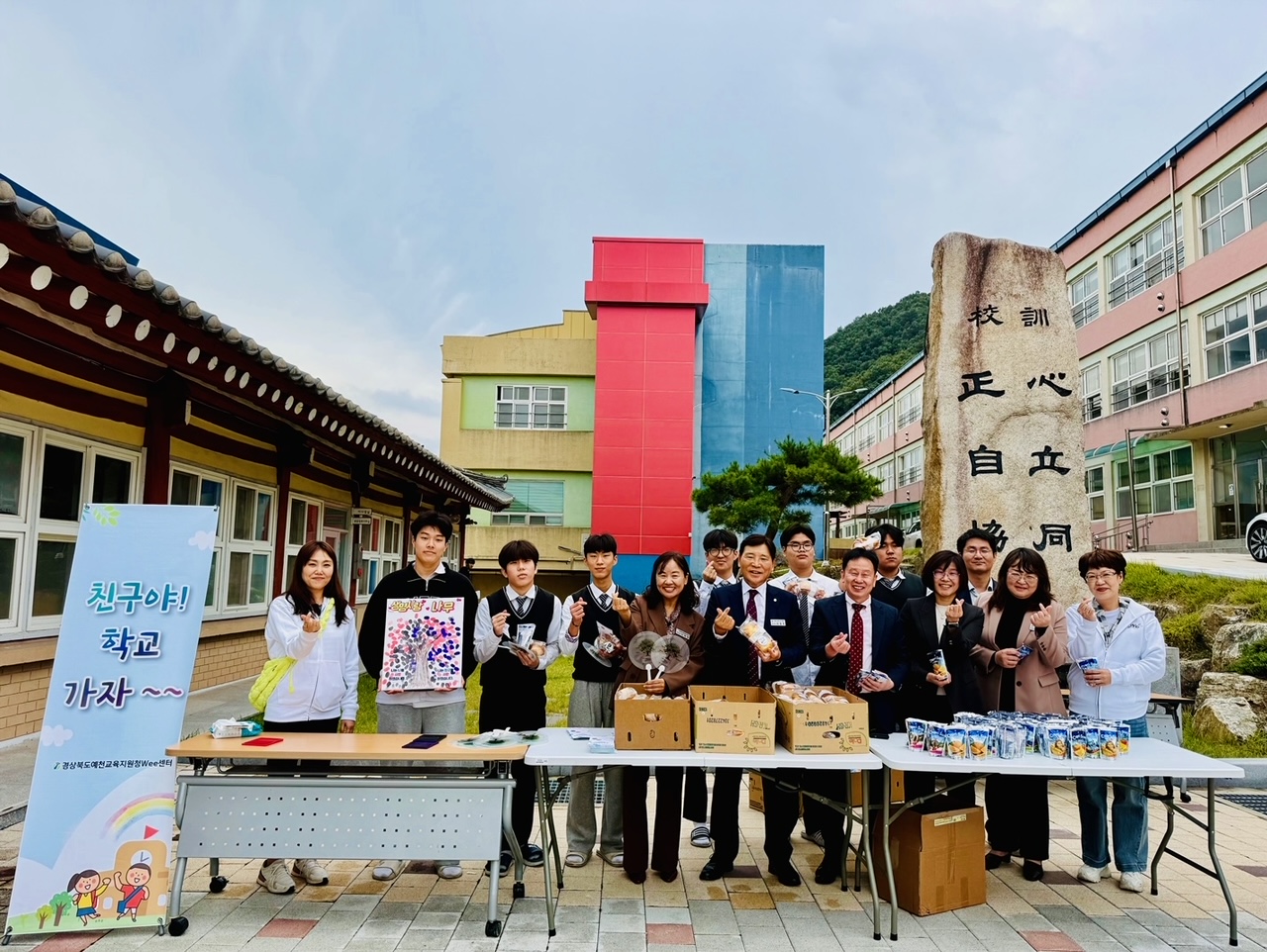 이창희 교육장은 ‘경북일고, 예천여고에 이어 대창고도 학생들에게 간식과 Wee센터의 교육자료를 배부해줌으로써 학교에 즐거운 기운을 나눠주고, 위센터 홍보를 강화해 학생들이 어려울 때 언제나 상담선생님들께 도움을 쉽게 구할 수 있는 분위기가 형성되기를 바란다.’고 하였다.