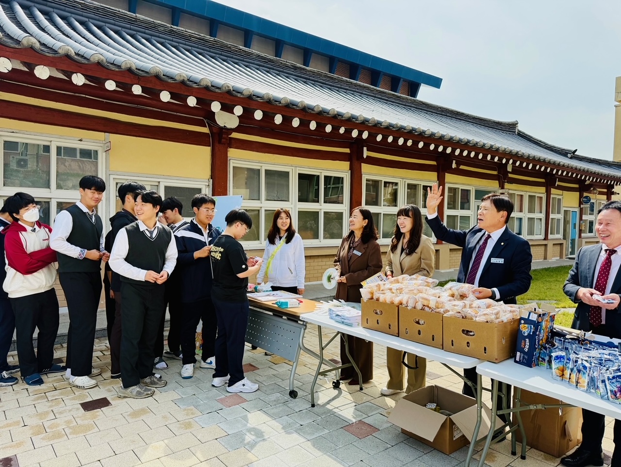 이번 행사에서는 학생들의 즐거운 학교 생활을 응원하고, 학생들의 자살, 비자살성 자해와 같은 고위기 사안에 대한 예방도 이루어지도록 생명존중 예방 캠페인도 함께 진행해 빵과 음료수, 생명존중 관련 교육자료, 위센터 리플렛 등을 함께 나누어주었다.