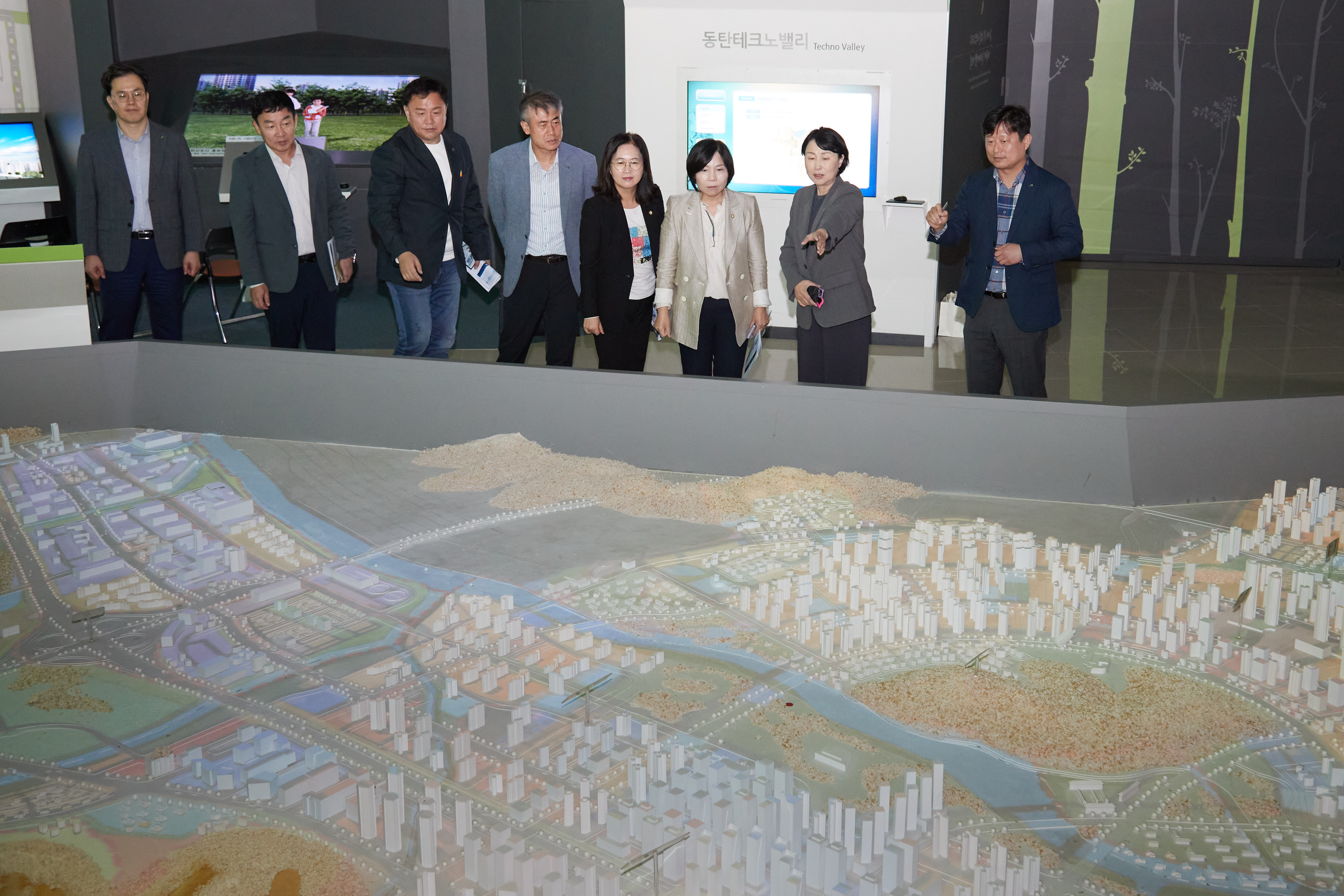 이날 유진선 의장과 이윤미 의회운영위원장, 신현녀 경제환경위원장은 GTX구성역의 비전을 모색하고자 LH동탄사업본부에서 동탄신도시 특별계획구역 현황에 대한 설명을 전해 듣고, GTX구성역 사업 진행 시 고려해야 할 사항 등에 대해 함께 고민하는 시간을 가졌다.