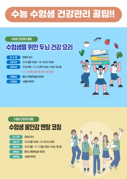 수험생 불안감 멘탈 코칭, 수험생을 위한 두뇌 건강 요리 2개 과정이 개설됐다.