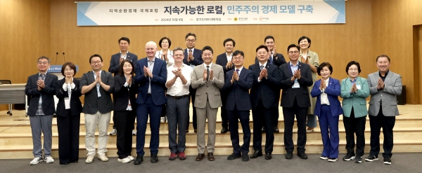 [금요저널] 경기도의회 경제노동위원회 이용욱 의원은 4일 경기도의회가 주최한 지역순환경제 국제포럼에 참석해 ‘지속가능한 로컬, 민주주의 경제 모델 구축’을 주제로 종합토론에 참여했다.