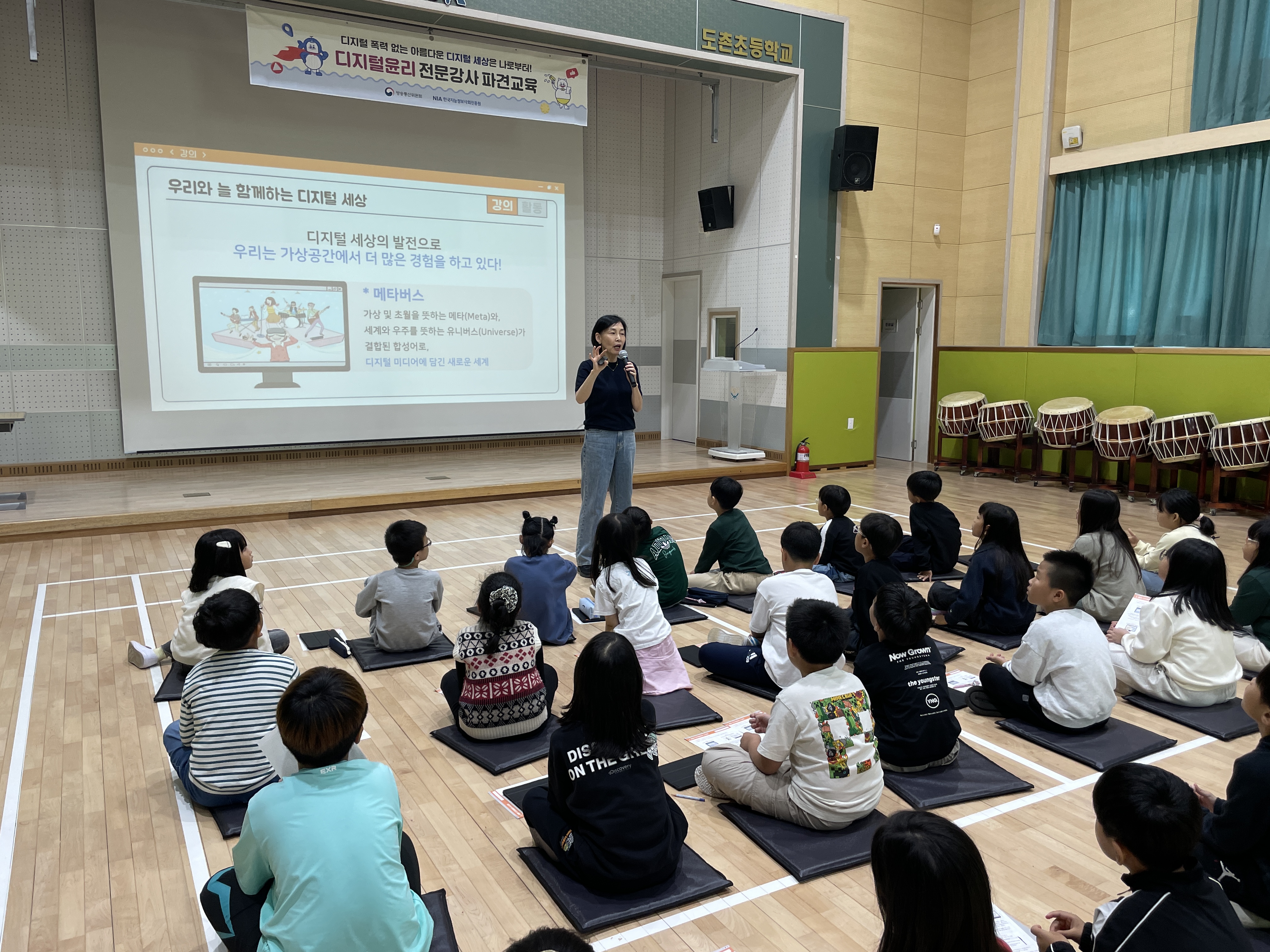 □ 지난 10월 8일 저학년 학생들을 대상으로 한국지능정보사회진흥원과 연계한 디지털 윤리 교육을 실시하였다. 디지털 윤리는 디지털 교육에서 놓치기 쉬운 부분이지만 미래 사회를 대비하기 위하여 꼭 필요한 역량 중 하나이다.