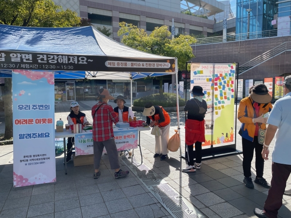 협의체는 또 주민들을 위한 퀴즈와 캠페인, 메시지 남기기 등의 프로그램을 진행하고 주변 어려운 이웃이 있으면 행정복지센터에 알려달라는 내용이 담긴 홍보물을 배부하고 현장에서 직접 복지 상담을 진행했다.