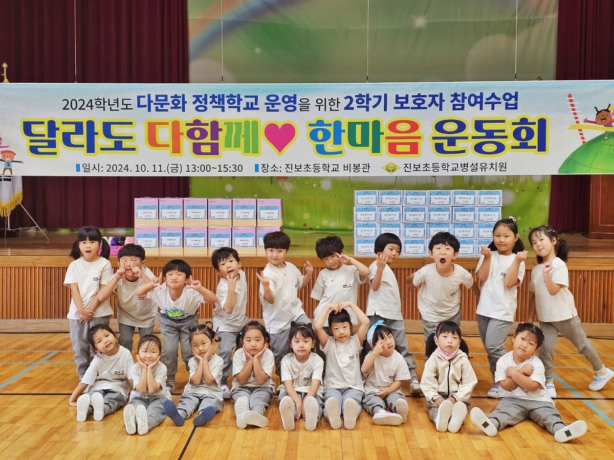 ◇ 진보초등학교 병설유치원(원장 조원희)은 10월 11일(금) 3~5세 유아 47명과 학부모님들이 참석한 가운데 가을 운동회를 개최하였다. 이번 운동회는 유아들의 건강한 성장을 응원하고 가족 간의 화합을 도모하기 위해 마련되었다.