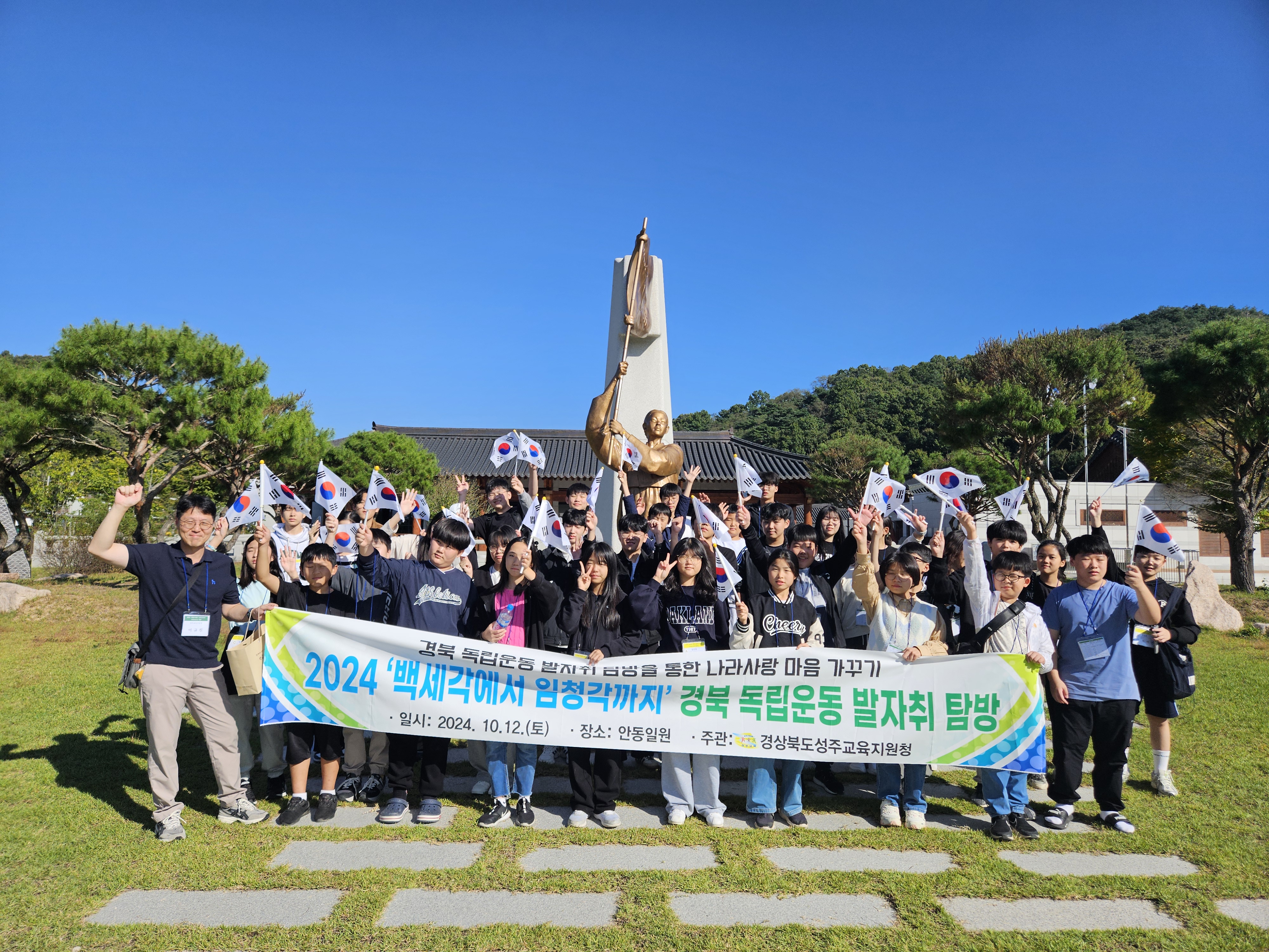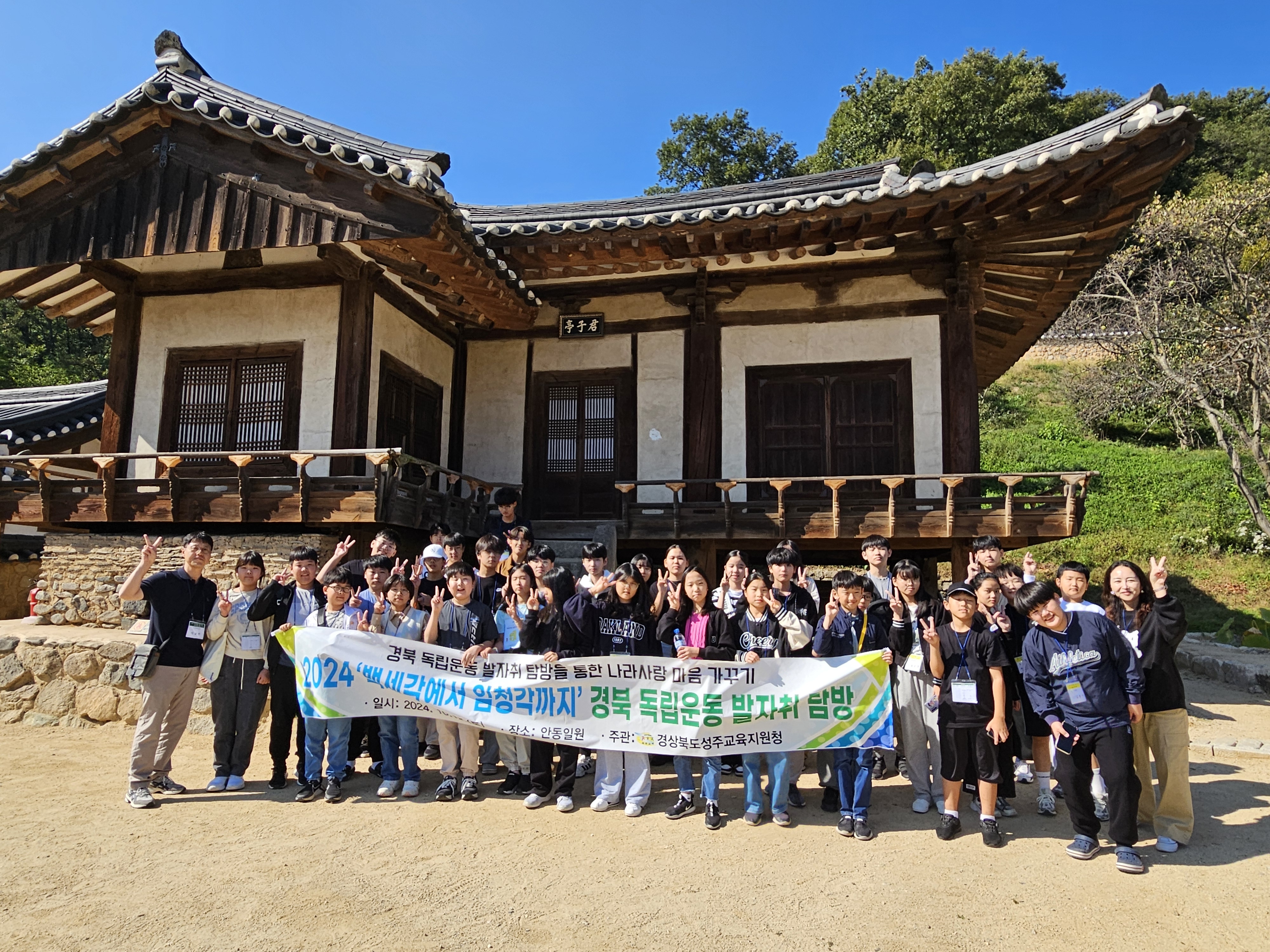 □ 경상북도성주교육지원청(교육장 정수권)은 2024. 10. 12.(토)에 성주 관내 초․중학생 35명을 대상으로 안동 일원에서『2024 ‘백세각에서 임청각까지’ 독립운동길 탐방』프로그램을 실시하였다.