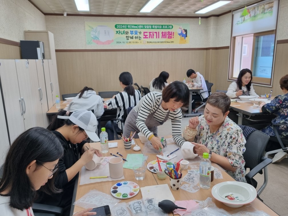 경상북도의성교육지원청(교육장 이우식)은 10월 12일(토) 오전 10시에 위(Wee)센터에서 정서적 어려움을 겪는 학생들과 그들의 학부모 40여 명을 대상으로‘자녀와 부모가 함께하는 도자기 체험' 프로그램을 진행했다. 이번 프로그램은 학생들의 정서적 안정을 도모하고, 부모와 자녀 간의 소통을 통해 가족 간 유대감을 높이는 것을 목적으로 기획했다.