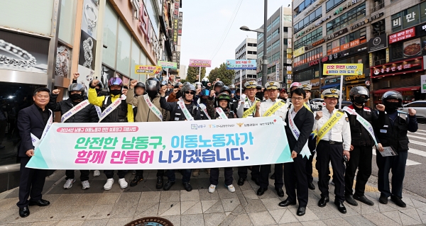 교육 후에는 박종효 남동구청장을 비롯해 남동경찰서 한국교통안전공단 인천본부, 배달플랫폼 노동조합 인천지부, 라이더유니온 인천지부 등 주요 유관 기관 관계자들이 이동노동자의 안전 의식을 높이기 위한 캠페인을 펼쳤다.
