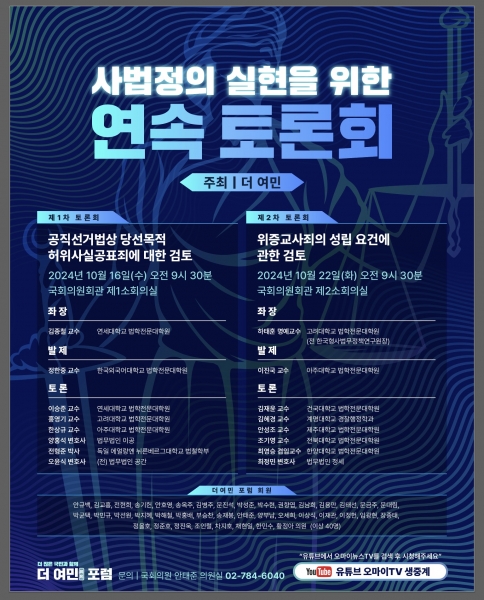 더불어민주당 의원모임 ‘더 여민’ 포럼 ’ 사법정의 실현을 위한 연속 토론회‘ 개최