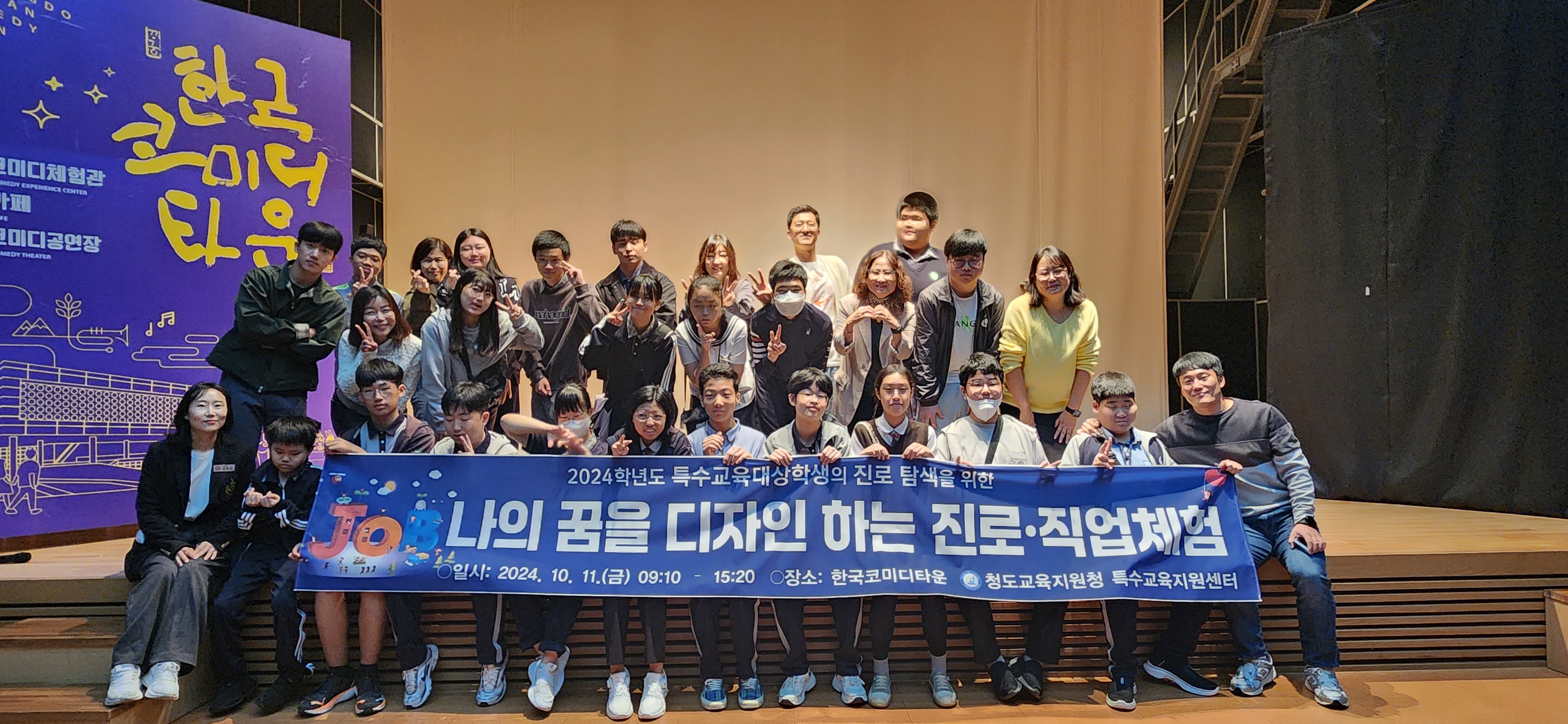 경상북도청도교육지원청(교육장 이시균) 특수교육지원센터는 10월 11일(금) 한국코미디타운에서 관내 중·고등 특수교육대상학생 20명을 대상으로 진로·직업 프로그램 체험을 실시하였다.
