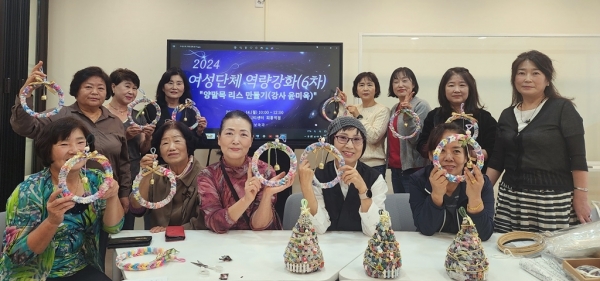 이날 윤미옥 강사가 양말목을 활용해 크리스마스 화관을 만드는 프로그램을 제공, 회원들은 생활용품을 만들며 역량을 강화하고 소통하는 시간을 가졌다.