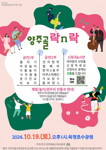 [금요저널] 양주시 문화예술교육공동체 탐이 오는 10월 19일 옥정호수공원 야외공연장에서 ‘마을축제 양주골 락n락’을 개최한다고 밝혔다.