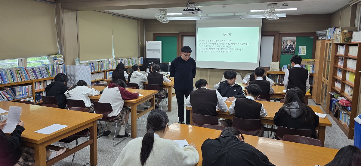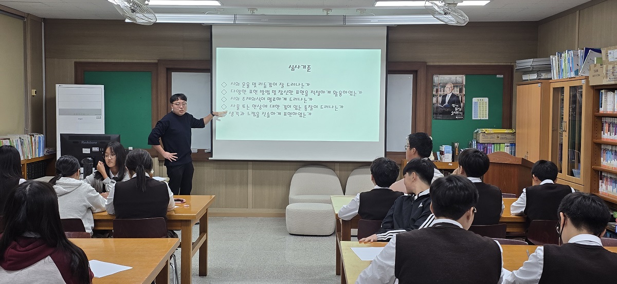 - 교내 시 창작 대회는 시 창작 경험을 통한 문학적 감수성 신장 및 시 읽는 학교 문화 조성을 목적으로 실시하였다.