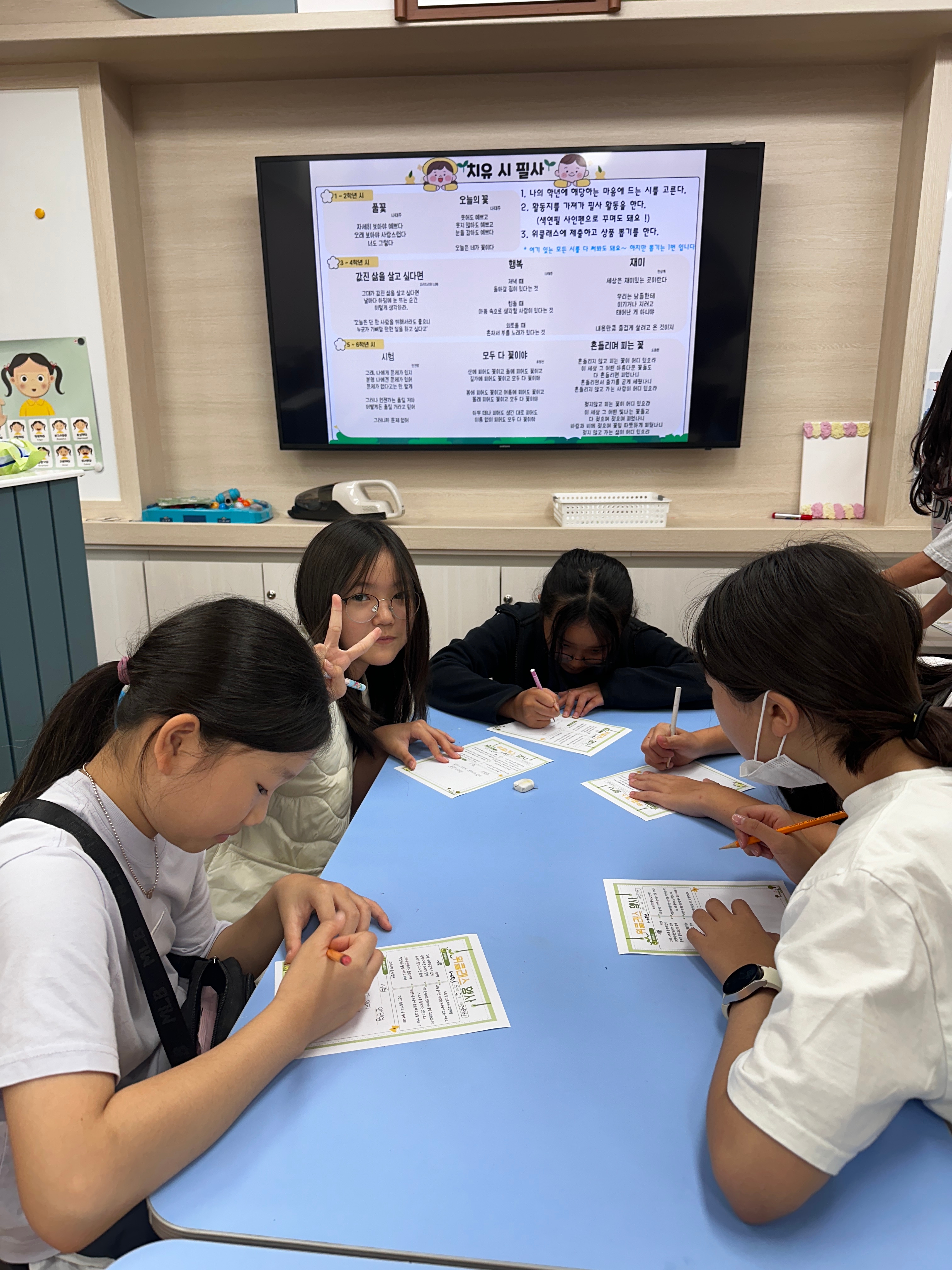 ‘치유 시 필사’행사에 참여한 학생들은 “필사가 무슨 말인지 처음 알았는데 저번에 읽은 시가 너무 좋아서 또 필사하러 왔어요.”, “공부가 아니라 행사로 시를 따라 쓰니까 너무 재밌는 것 같아요.”고 말했다.